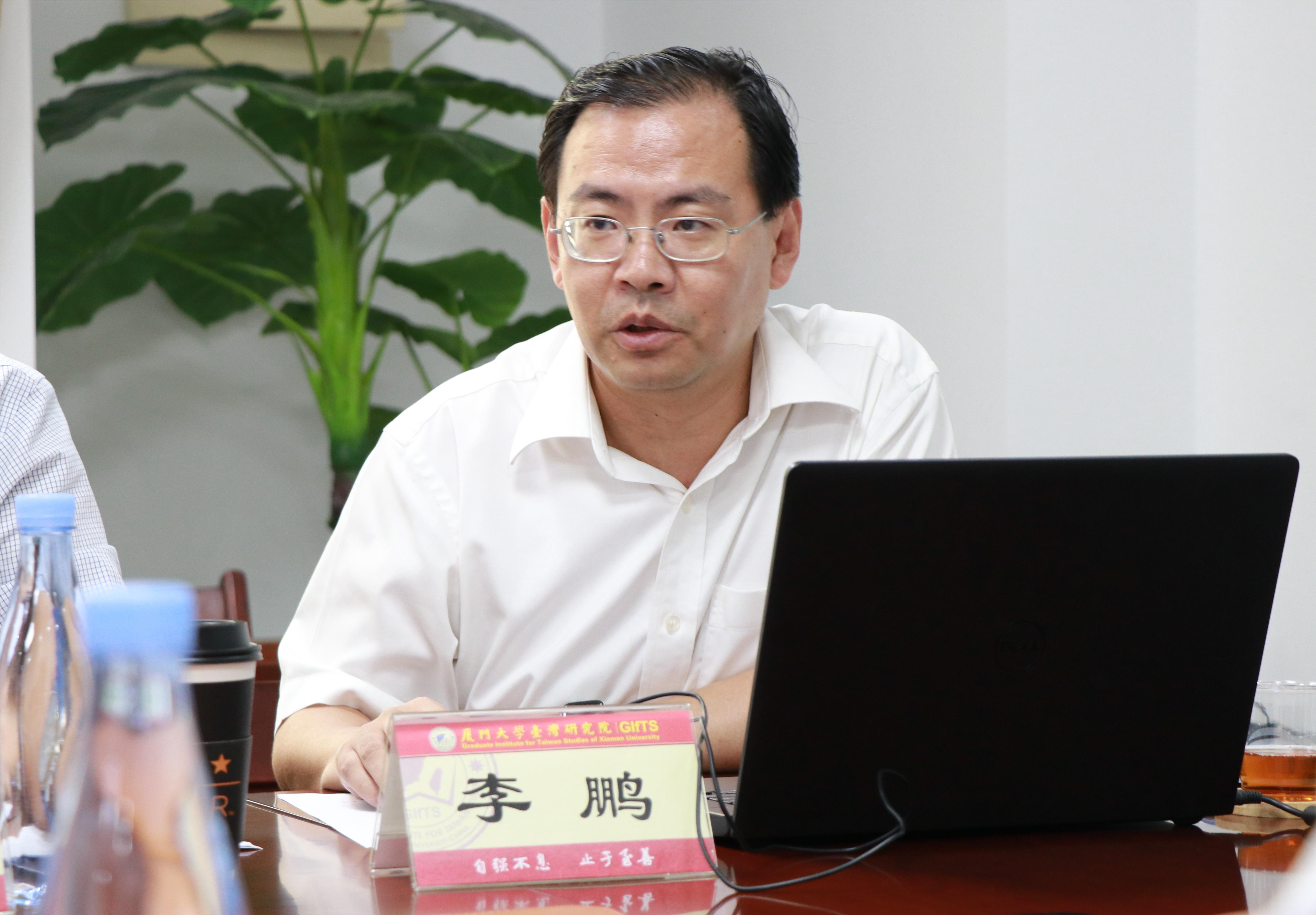 李鹏院长汇报主题教育专题调研开展情况。李鹏院长表示,习近平总书记强调要从推动科学决策、民主决策,推进国家治理体系和治理能力现代化、增强国家软实力的战略高度,把中国特色新型智库建设作为一项重大而紧迫的任务切实抓好。目前我院国家高端智库建设已进入关键冲刺阶段。台湾研究院党委在认真学习、深刻领会习近平总书记关于新型智库建设的精神和指示,经党委会研究讨论,确定了专题调研的主题为“加强国家高端智库建设,提升服务区域发展和国家战略能力”。李鹏院长详细介绍了此次专题调研的组织和方法:在调研主题的主线下,设6个专题,由6位处级领导干部牵头调研。研究院通过座谈会、问卷、访谈、实地调研等“请进来”、“走出去”相结合的形式,多层次、多方位、多渠道地开展调研。李鹏院长从党建和事业深入融合、教师参加智库研究的意愿和能力、涉台舆论引导与话语能力建设、文献信息资源建设、实验室建设、高质量研究生人才培养、人才队伍建设体制机制等方面介绍了存在的问题、深入剖析产生问题的原因并提出解决问题的办法。