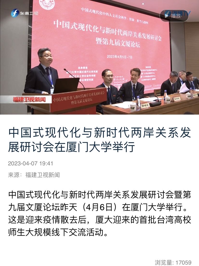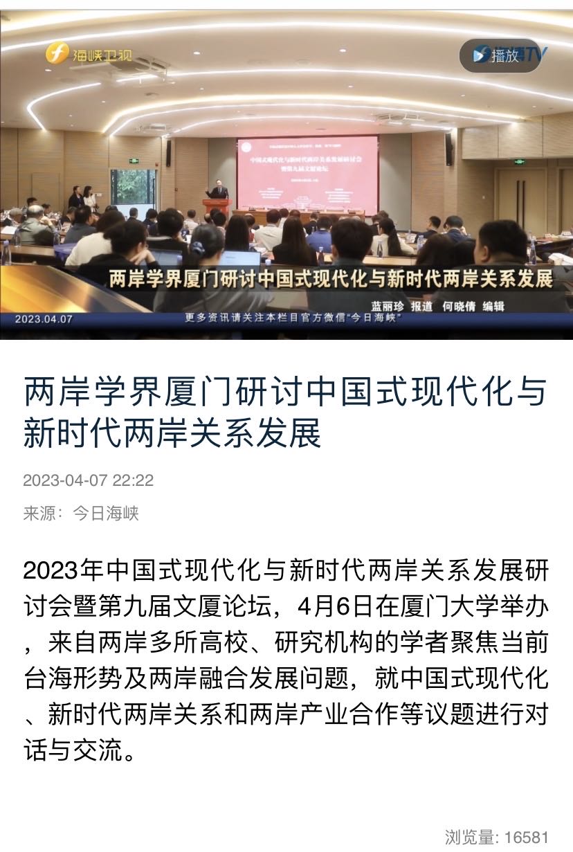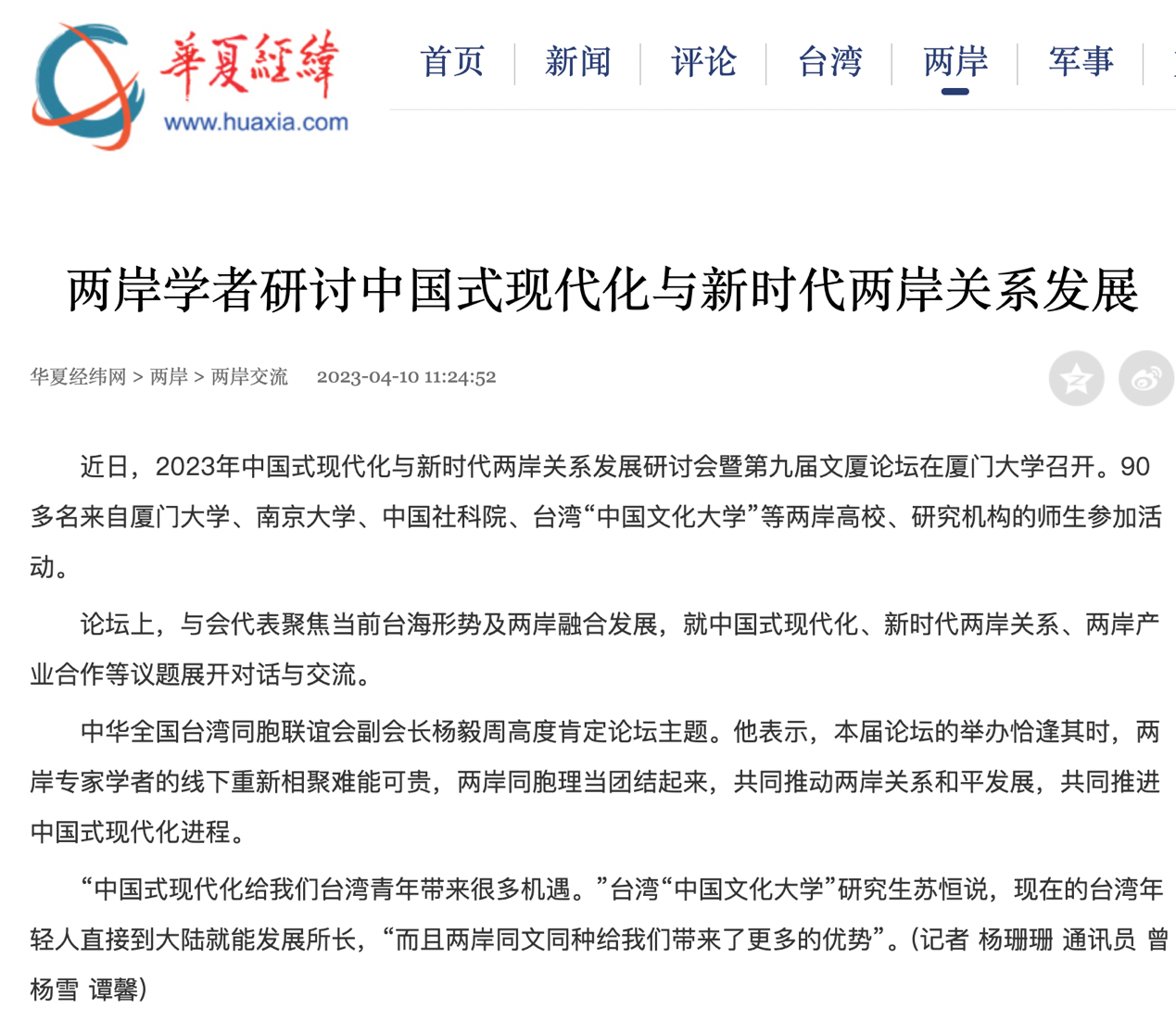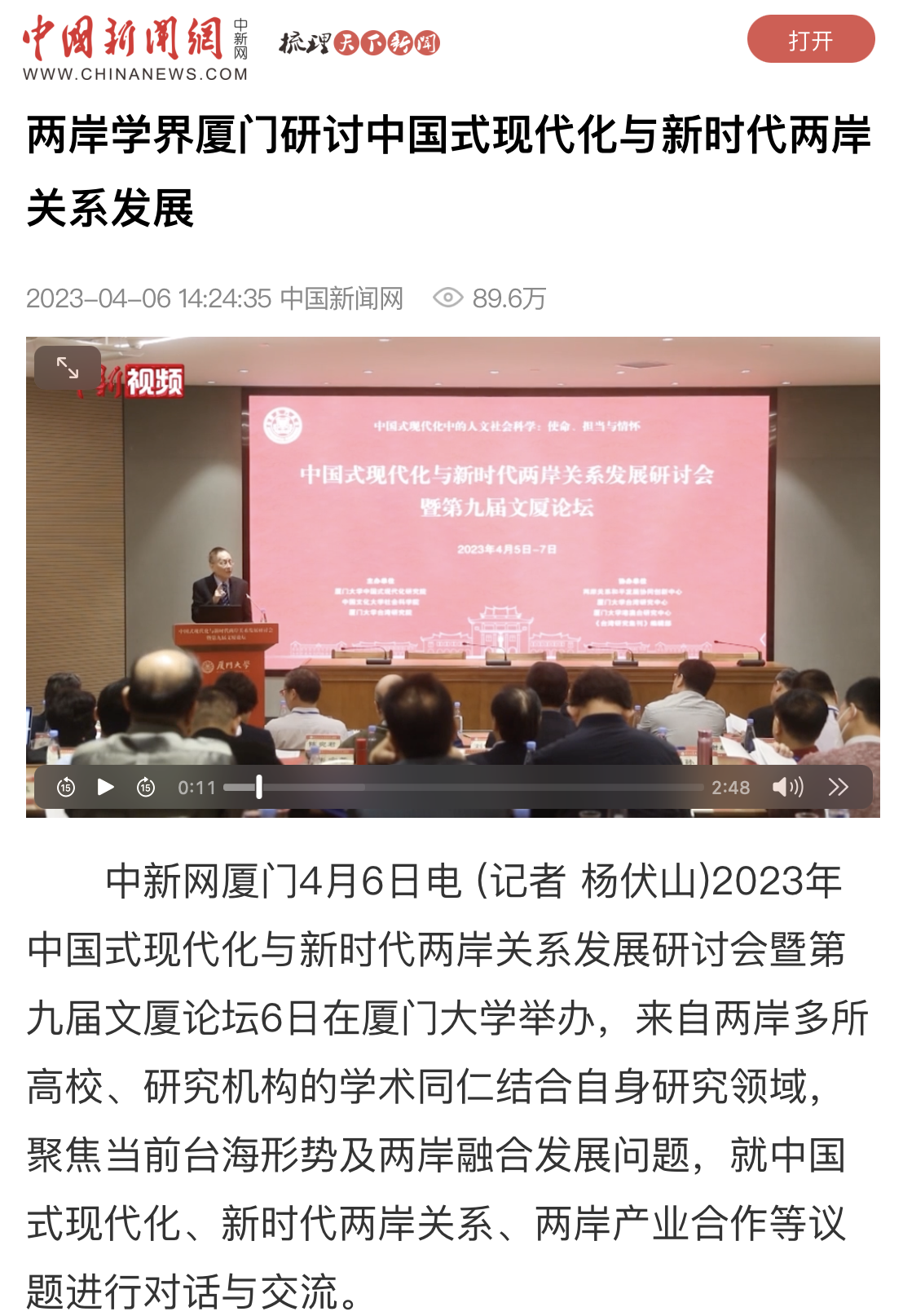 通过官方机构官网、新闻网站、报刊、电视、广播所形成的全媒体传播矩阵,第九届文厦论坛得到海峡两岸社会各界的广泛关注。截至4月11日,中国新闻网关于“两岸学界厦门研讨中国式现代化与新时代两岸关系发展”的报道浏览量已超过90次。借助此类中央重点新闻媒体网站的宣传,本届论坛的影响力节节攀升。