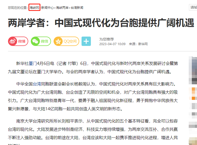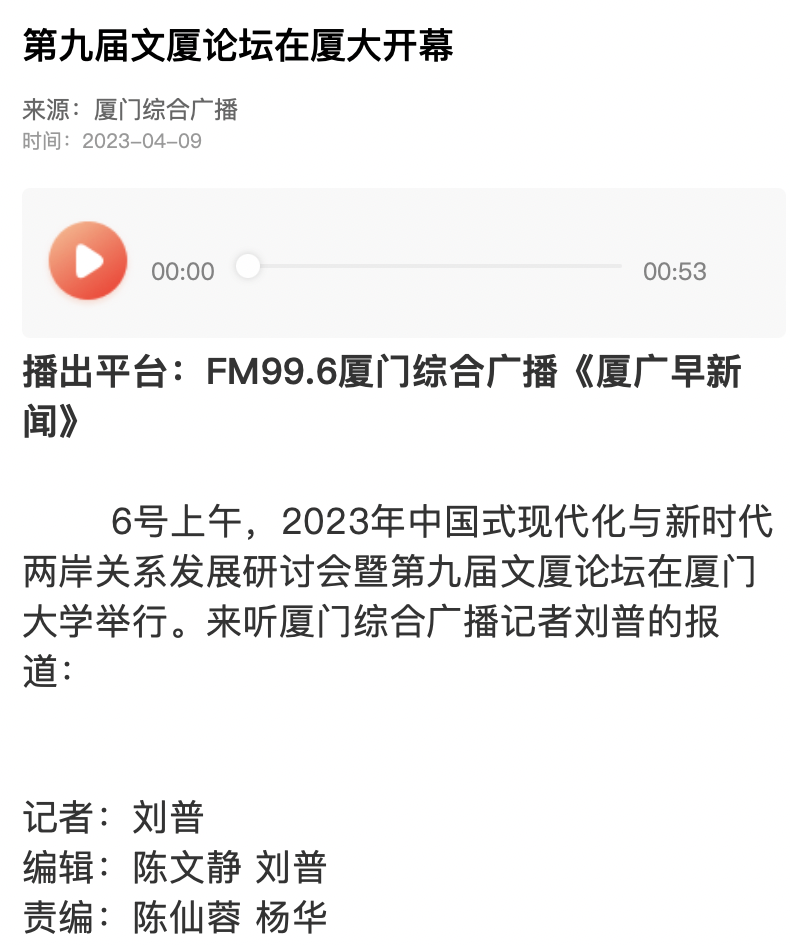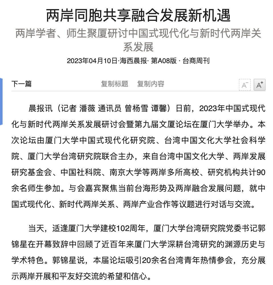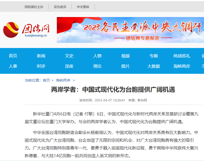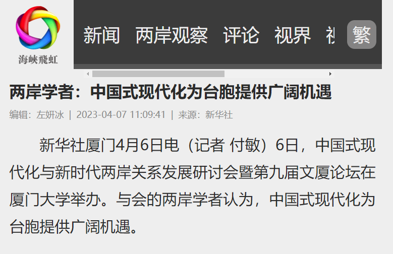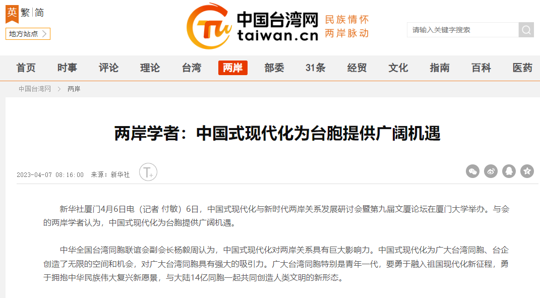 通过官方机构官网、新闻网站、报刊、电视、广播所形成的全媒体传播矩阵,第九届文厦论坛得到海峡两岸社会各界的广泛关注。截至4月11日,中国新闻网关于“两岸学界厦门研讨中国式现代化与新时代两岸关系发展”的报道浏览量已超过90次。借助此类中央重点新闻媒体网站的宣传,本届论坛的影响力节节攀升。