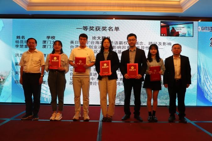法律分论坛的论文一等奖颁发给了厦门大学台湾研究院的硕士生吴雪珍《台湾地区推进“法理台独”的立法活动研究》。该文聚焦“法理台独”,文章从“领土”、“人民”及“政权组织”三个层面分析了“法理台独”在法律层面的推进现状,揭示了台湾当局“以法谋独”的现实危害。