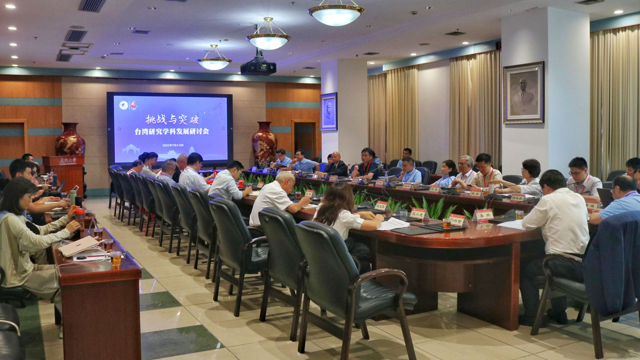 为进一步推动台湾研究领域学科建设与学术创新,2025年7月5日,厦门大学台湾研究院在颂恩楼215会议室举办“挑战与突破——台湾研究学科发展研讨会”。本次研讨会邀请来自校内外的40余位知名专家学者,结合自身从事台湾研究的丰富经验,针对台湾研究学科的建设现状、现实困境与未来路径等重要议题展开了全面深入的交流,为推动台湾研究学科发展提出了诸多有益思路。本次研讨会分为上下两个环节:上半场以“台湾研究学科的发展现状与现实挑战”为主题,由厦门大学台湾研究院院长李鹏教授主持;下半场聚焦“台湾研究学科的发展前景与突破路径”,由副院长张文生教授主持。