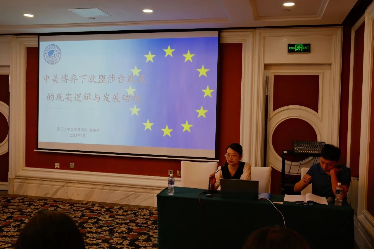 在会议中,我院博士生就台海安全、美欧涉台政策动向、中美贸易关系与台企产供应链调整等议题,同与会学界同仁汇报交流,黄继朝老师、邓婧老师与叶晓迪老师(广东外语外贸大学区域国别学院副教授、云山青年学者)、秦立志老师(中国海洋大学国际事务与公共管理学院政治学系副教授)则作为评议人与我院博士生和学界师友进行了专业交流。