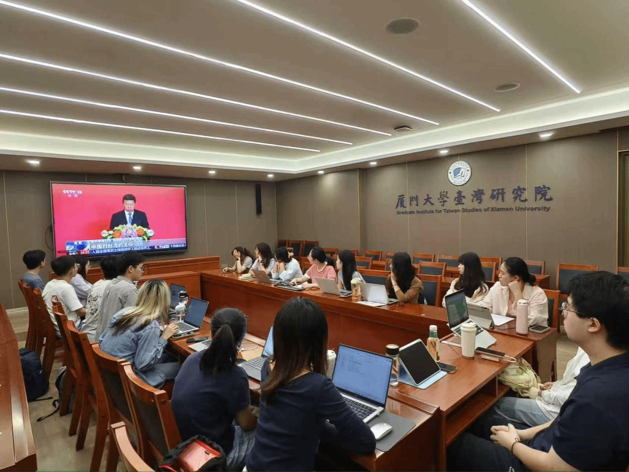 十四届全国人大常委会第十八次会议10月24日经表决,通过了关于设立台湾光复纪念日的决定,以法律形式将10月25日设立为台湾光复纪念日,并规定国家通过多种形式举行纪念活动。次日,纪念台湾光复80周年大会在京召开。中共中央政治局常委、全国政协主席王沪宁出席并讲话。此次学习会同时学习了王沪宁主席的讲话精神,大家一致表示要将“听党话、跟党走”的政治自觉和为祖国统一而奋斗的历史使命紧密结合,把学习成果转化为推动民族复兴的坚定行动,以矢志不渝的爱国情怀积极参与两岸交流,勇担时代重任,为共筑民族复兴的伟大中国梦贡献厦大台研的磅礴青春力量。