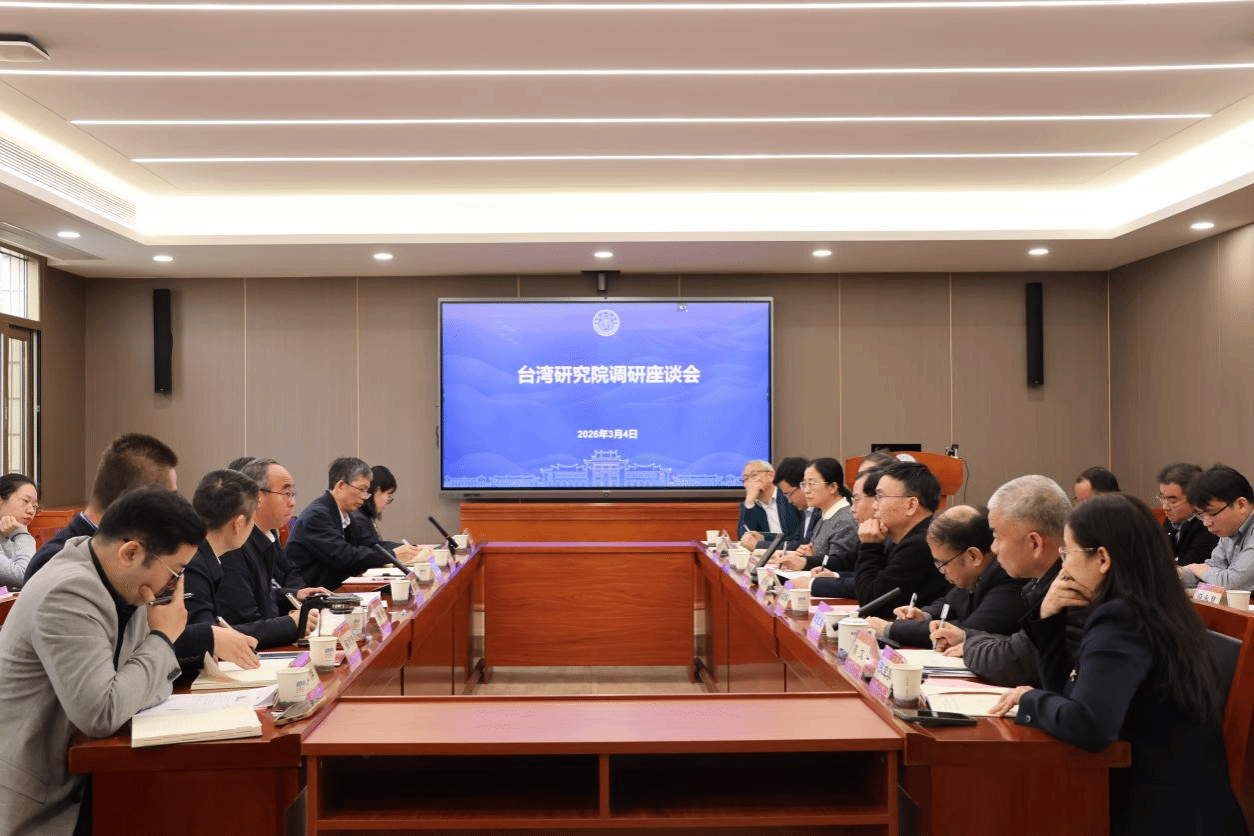 2026年3月4日上午,校长、中国科学院院士胡文平带队考察调研台湾研究院,与学院领导班子、平台所负责人及教师代表座谈交流,共同谋划学科高质量发展和推进国家高端智库建设。座谈会由院党委书记郭锦星主持。