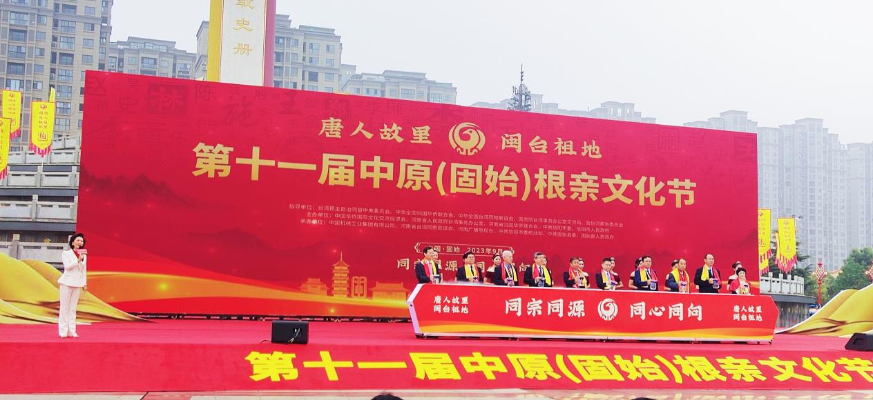 9月26日上午,由台盟中央、全国侨联、全国台联、国台办交流局、河南省政协指导,中侨文促会、河南省台办、河南省侨联、中共信阳市委、信阳市政府联合主办,中国机械工业集团有限公司、河南省台联、河南广播电视台、中共信阳市委统战部、中共固始县委、固始县政府承办的第十一届中原(固始)根亲文化节在河南隆重开幕,厦门大学中华文化促进学社受邀出席,并组织福建籍、台湾籍本科生及硕博士生一行10人参与海峡两岸青年联谊活动,厦门大学台湾研究院国内交流合作中心主任王玉国老师带队出席。