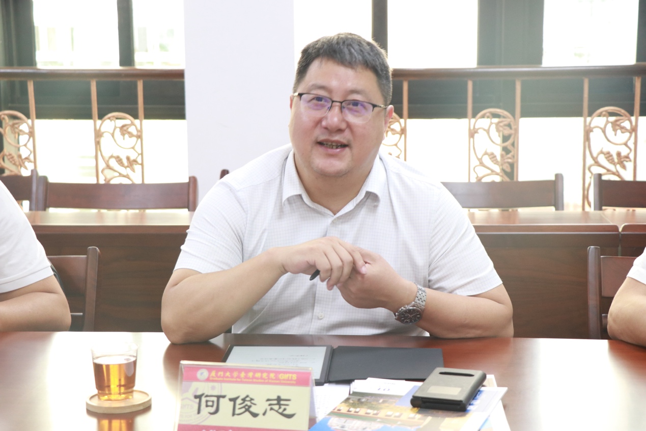 2023年9月27日上午,厦门大学台湾研究院郭锦星书记、沈惠平老师陪同中山大学粤港澳发展研究院何俊志院长、伍俐斌老师到厦门市思明区中山路龙威台湾青年创业就业基地调研台青在大陆创业情况。思明区台港澳办石世彬主任以及许竞择、苏硕民、周伟民等台港澳办干部,以及龙威基地负责人叶石培、杨超闳(台青)参加了座谈会。