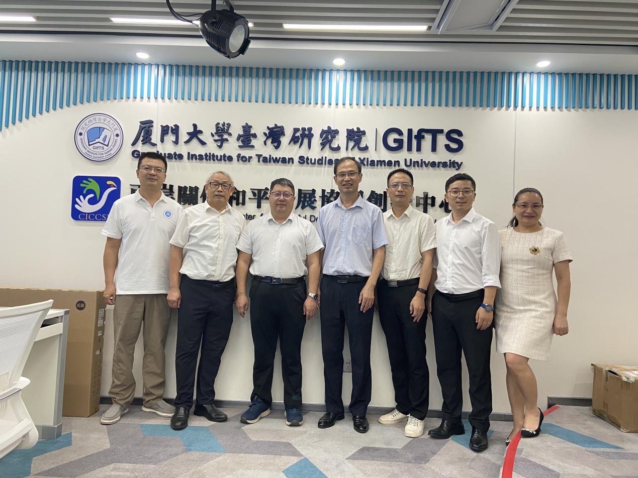 当天下午,交流团一行到台湾研究中心实验室参访交流。厦门大学台湾研究中心主任陈先才教授为其介绍了实验室平台建设进展,随后与来访嘉宾针对2024年台湾“大选”选情及台海局势交换看法。