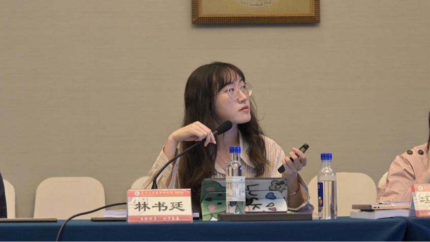 在学子论坛闭幕式上,厦门大学台湾研究院文学所的蒋小波副教授对文学分论坛进行了总结汇报。蒋老师表示,此次论文质量颇高,体现了选题的多元性和前沿性、方法的创新性以及学术视野的开创性,期待未来有更多的台湾同学参与两岸学子论坛。