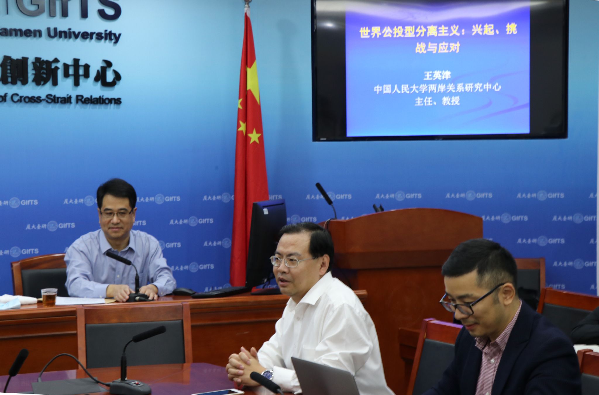 在互动阶段环节,王英津教授回应了在场听众提出的多个问题,包括国家结构对于分离主义的影响,主权原则对分离主义思潮的限制,台湾地区“台独公投”的非法性等,会场气氛热烈。