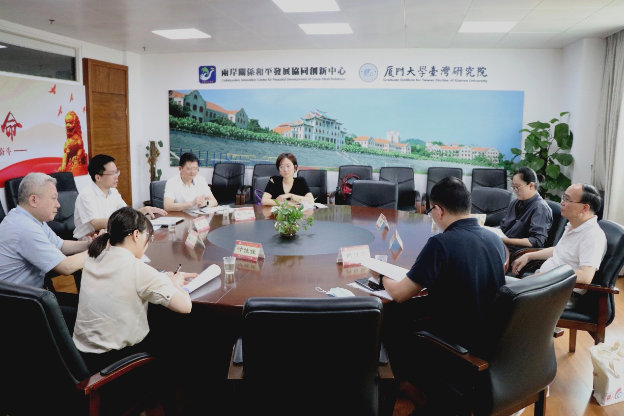 6月22日下午,浙江工贸职业技术学院余闯校长、张俊平副校长一行五人到访两岸关系和平发展协同创新中心,中心主任刘国深教授、我院社会所所长肖日葵副教授、两岸所副所长唐桦副教授出席座谈会。