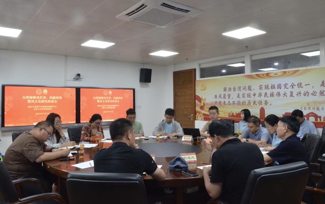 7月7日上午,天津大学建筑学院教授、博士生导师刘庭风带领相关课题组成员一行造访两岸关系和平发展协同创新中心,并与中心师生举行“台湾海峡风灾害、风能利用暨风文化研究”座谈会。两岸关系和平发展协同创新中心主任刘国深教授,厦门大学台湾研究院副院长张羽教授,厦门大学台港澳研究中心副主任、台湾研究院政治研究所所长王贞威副教授,台湾研究院经济所所长王勇副教授,台湾研究院国内合作交流中心主任王玉国助理教授,两岸关系和平发展协同创新中心秘书林悦贤出席会议。