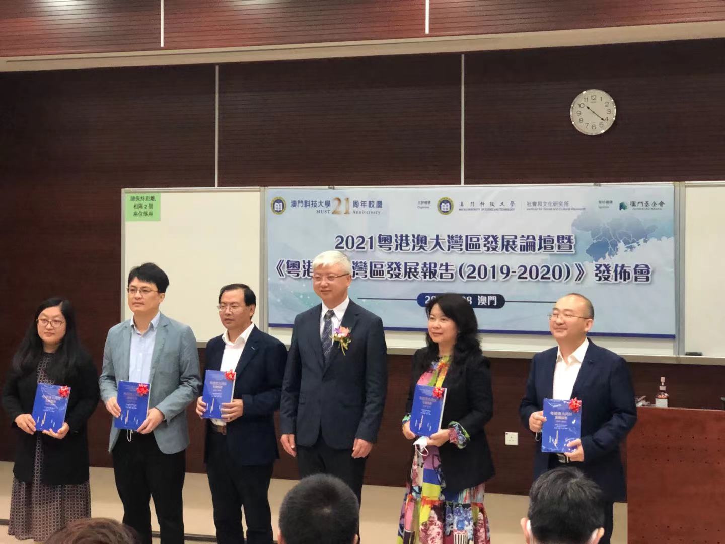 在澳门期间,我院学者一行还与澳门特区专家学者进行学术交流。在澳门大学,我院学者与该校社科院院长胡伟星教授等多位学者进行座谈,探讨当前中美关系与美国对台政策的延续与变化。在澳门科技大学,我院访问团参加了该校主办的“2021粤港澳大湾区发展论坛暨《粤港澳大湾区发展报告(2019-2020)》发布会”,走访了新近成立的两岸关系研究中心,并与胡根主任就深化双方科研合作达成一致意见。在《新华澳报》社,林昶社长接待了访问团一行,并就澳台关系议题进行深入交谈。