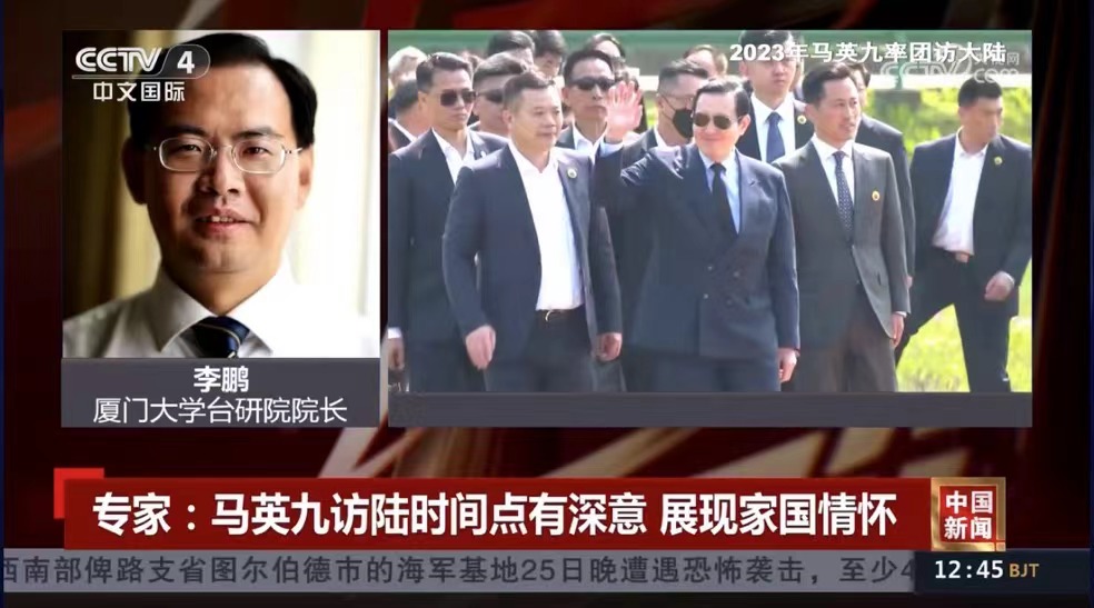国台办发言人陈斌华25日表示,马英九先生将率台湾青年于4月1日至11日到广东、陕西、北京等地寻根交流。这是马英九先生第二次率领台湾青年交流团来到大陆,选择的时间点和第一次基本相近。对此,厦门大学台湾研究院院长李鹏在接受央视《中国新闻》采访时表示,马英九先生此次访问大陆在时间点以及随访人员选择方面都有重要深意。