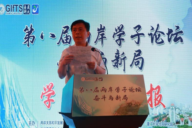 在学子论坛闭幕式上,厦门大学台湾研究院文学所的蒋小波副教授对文学分论坛进行了总结汇报。蒋老师表示,此次论文质量颇高,体现了选题的多元性和前沿性、方法的创新性以及学术视野的开创性,期待未来有更多的台湾同学参与两岸学子论坛。