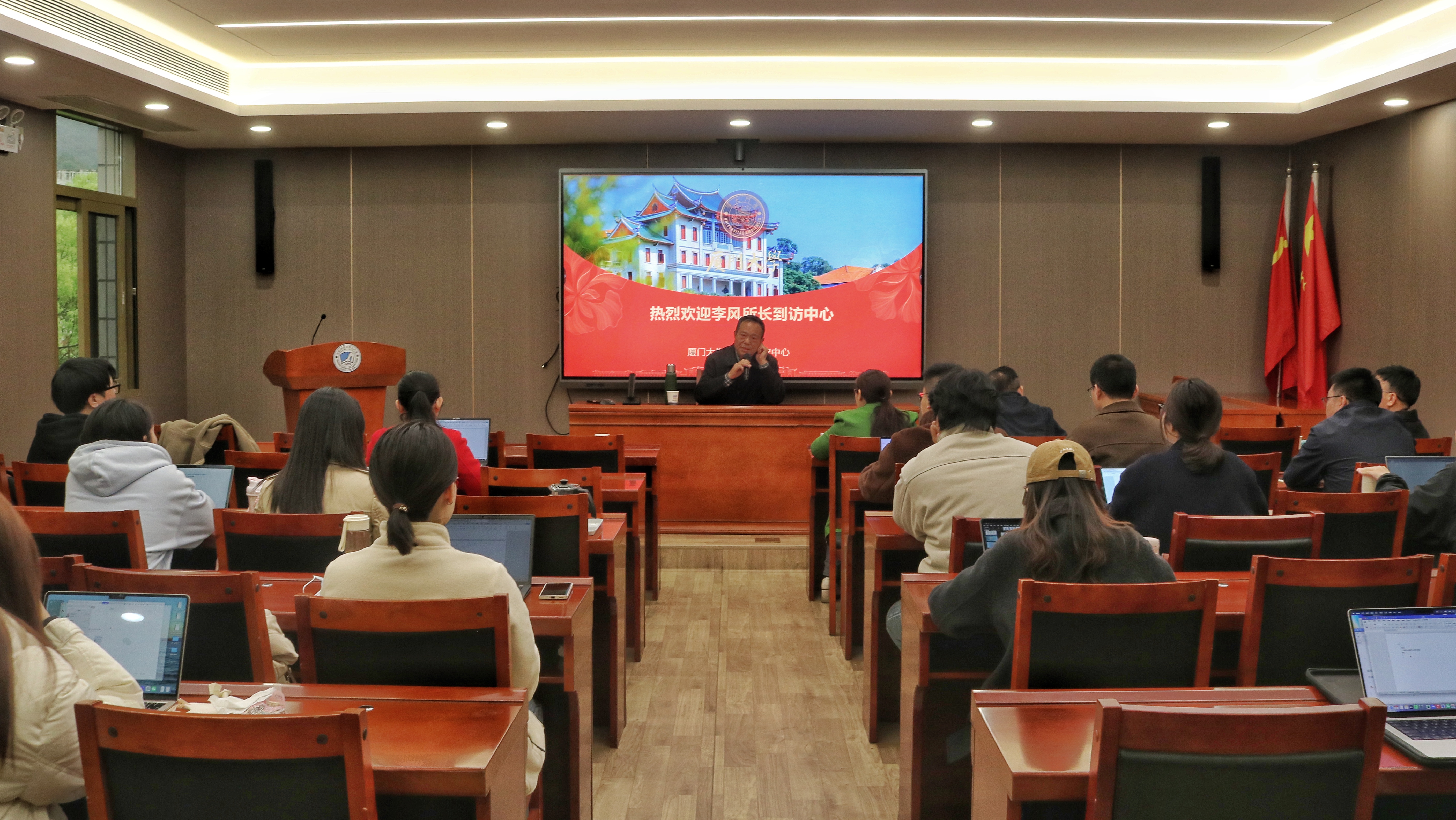 讲座伊始,李风所长介绍了他与厦门大学台湾研究院之间深厚的渊源。他回顾了多年来与台湾研究院在学术交流等方面的紧密联系,情真意切,令人动容。随后,他向港澳台研究中心赠送了自己的学术著作,双方举行了简短而隆重的赠书仪式。