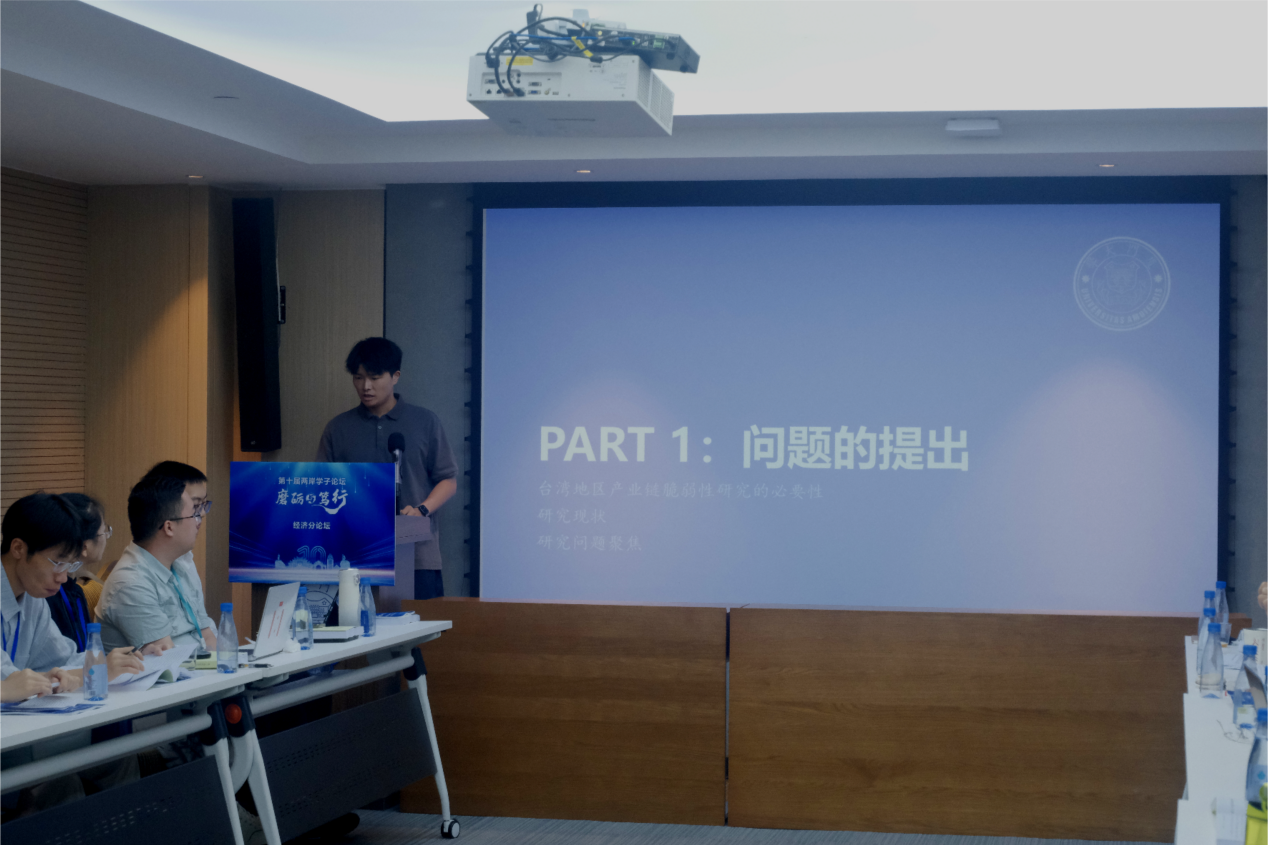分论坛上半场和下半场分别以“全球价值链重构和两岸经贸关系”“中国式现代化与两岸经济融合发展”为主题,青年学子们分别就各自发表论文的选题背景、研究视角、数据选取、模型构建、研究结论等方面进行简要阐述,期间来自厦门大学台湾研究院经济所的黄燕萍副教授、武汉大学经济管理学院的张克群副教授、福建社科院现代台湾研究所的林中威副研究员、中国社会科学院台湾研究所的熊俊莉研究员与广西民族大学东盟研究院的赵子龙副研究员、暨南大学经济学院的王鹏教授、广西师范大学刘澈元教授、深圳大学政府管理研究院的段哲哲研究员、宁波大学商学院的伍湘陵副研究员等专家学者就两岸学子们的汇报内容进行了专业点评,与会学子收益良多。