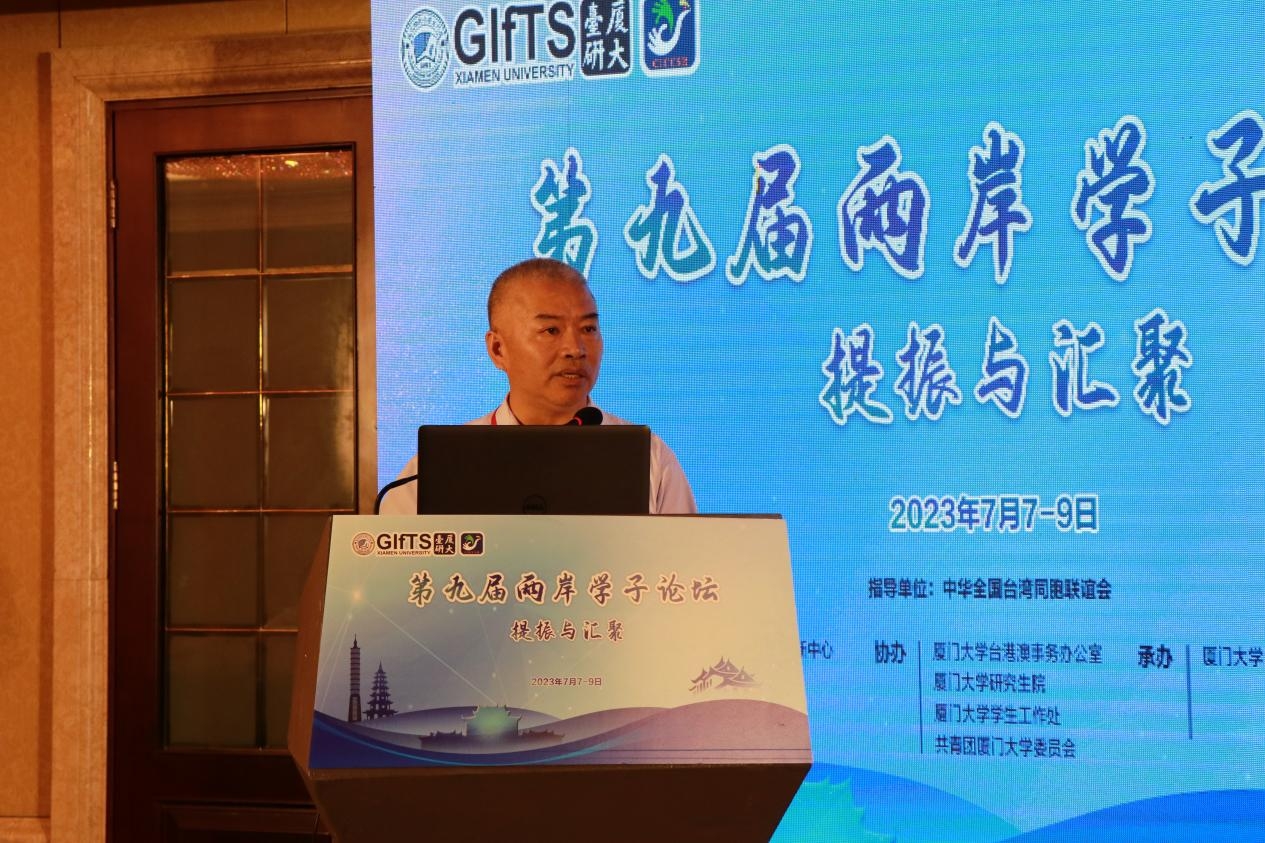厦门大学台湾研究院党委书记郭锦星向大会致闭幕辞。郭锦星书记首先对大力支持此次论坛的指导单位以及参加此次论坛的领导嘉宾、专家学者、媒体朋友和青年学子表示衷心感谢,同时也对参与会议筹备和开展的工作人员以及志愿者们致以真诚的感谢。郭锦星书记指出,两岸青年参与学子论坛,加强了政治、经济、历史、文学、法律、社会和教学等跨学科的学术交流,思想在判断中产生火花,学术在切磋中得到发展,情感在交流中得到升华。