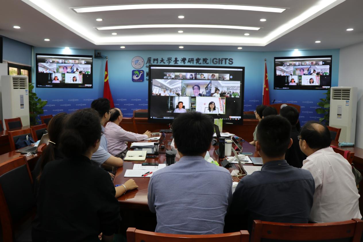 6月10日,2022年新时代两岸关系发展论坛暨第八届文厦论坛学术研讨会在厦门大学台湾研究院和两岸分会场开幕。本次研讨会由厦门大学台湾研究院、中国文化大学社会科学院、两岸关系和平发展协同创新中心和厦门大学港澳台研究中心共同举办。因受疫情影响,论坛采取海峡两岸线上连线形式进行。本届文厦论坛下设两个分论坛,上午举行学者论坛,下午举行学生论坛。来自海峡两岸的专家学者结合自身研究领域就当前台海形势,如中美博弈下的两岸关系,俄乌冲突的台海区域效应,两岸命运共同体建构等议题展开了深入讨论与交流。线上邀请到了七十余位两岸学者参会,线下共有二十余位台湾研究院师生参加。