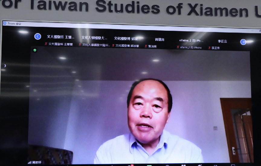 在闭幕式上,厦门大学台湾研究院特聘教授、海峡两岸和平发展协同创新中心主任刘国深表示,希望在疫情结束以后,两岸的师生能有机会进行线下的研讨,他认为两岸关系的发展,需要继续有温柔、理性、包容的声音,为了两岸共同的明天,两岸学者应当携起手来共同努力。中国文化大学社会科学院院长、特约讲座教授赵建民表达了对厦门大学台湾研究院的感谢,感谢本次文厦论坛为两岸的同仁、学者、学子提供了一次宝贵的交流平台,他对两岸关系的前途抱有乐观态度,希望两岸的交流贡献不仅仅来自于厦门大学与文化大学两校的交流。赵建民指出,今年邀请了年轻人参加文厦论坛,他感到非常欣慰两岸有一批杰出的年轻人关心两岸和平交流的前途,他呼吁两岸学子珍惜这样宝贵的学术交流机会,并祝两岸青年学子在未来的交流中继续像此次的学术交流一样展现耐心、展现理性,最后他再次感谢厦门大学台湾研究院将此次论坛办得如此成功与精彩,他感谢厦门大学台湾研究院教授刘国深、副院长张文生对文厦论坛的持久建设所付出的努力,同时也感谢文化大学的师生热情参与本次文厦论坛。赵建民表示,本届文厦论坛的成果一定能够激发出两岸师生在未来学术研究上的创造力。