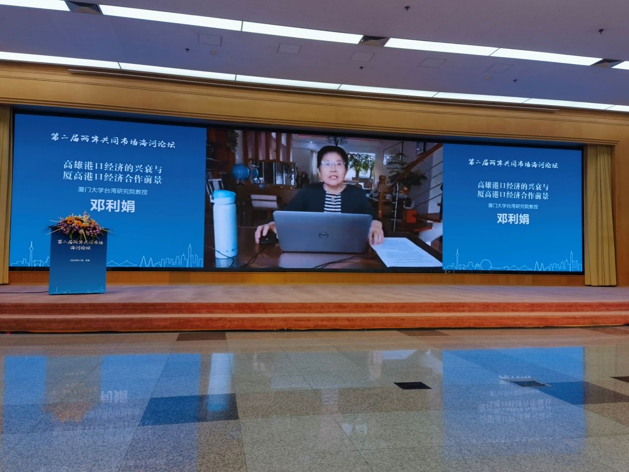 2022年11月19日,由海峡两岸关系研究中心、两岸关系南开大学研究基地、天津市台湾同胞投资企业协会、台湾两岸共同市场基金会共同主办的第二届“两岸共同市场海河论坛”在天津举办。来自海峡两岸的专家学者,围绕“打造两岸共同市场——深化两岸港口城市合作”的论坛主题,通过“线上+线下”的方式,开展深入交流研讨。闽江学院乡村振兴研究院“闽都学者”讲座教授、海峡两岸乡建乡创发展研究院副院长、厦门大学台湾研究院教授邓利娟应邀参加论坛,并在线上做题为“高雄港口经济的兴衰与厦高港口经济合作前景”的大会主旨发言。