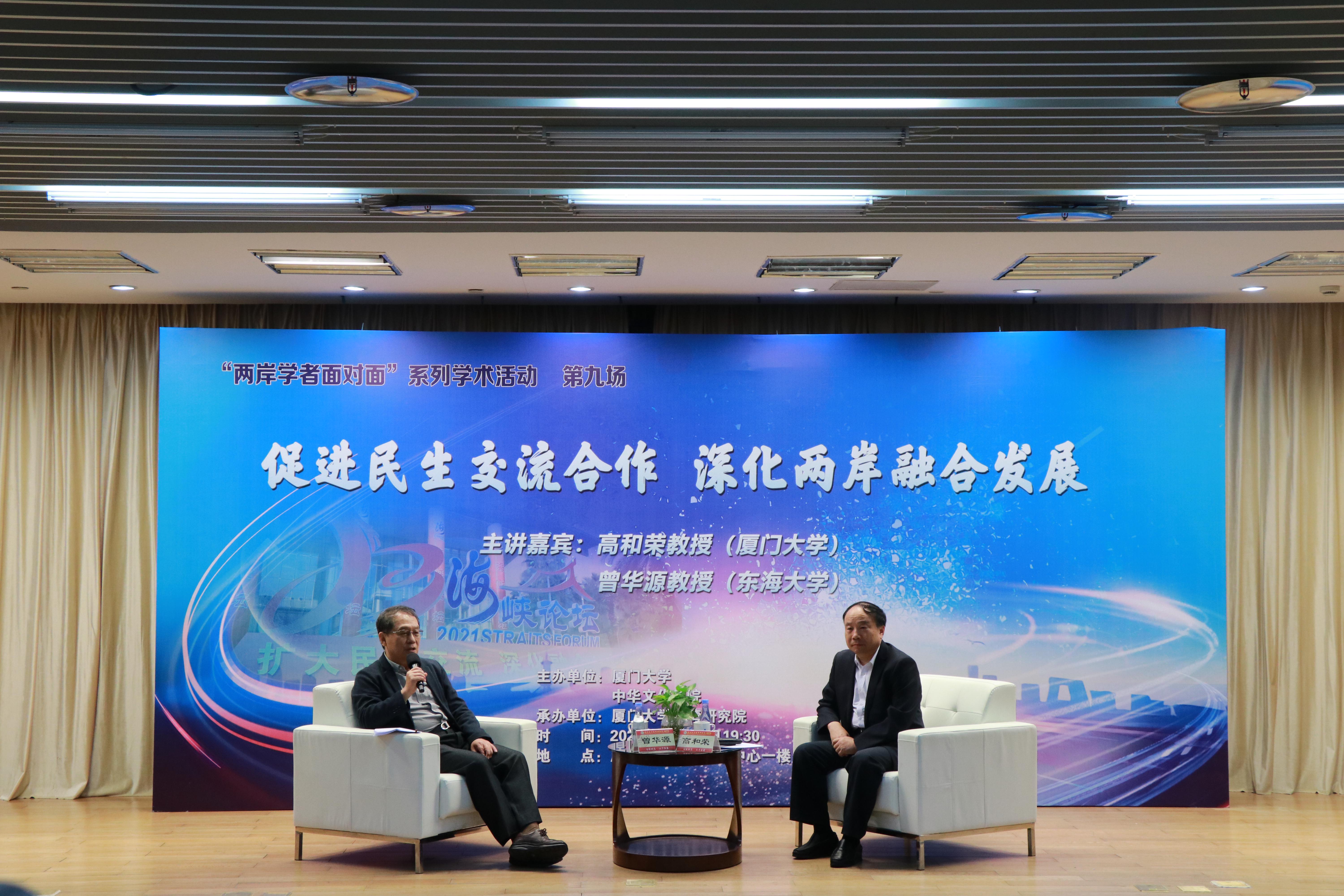 2023年11月23日,由厦门大学和中华文化学院共同主办的“两岸学者面对面”系列活动第九场在厦门大学科学艺术中心举办。本次活动由厦门大学台湾研究院承办,厦门大学高和荣教授与台湾东海大学曾华源教授以“促进民生交流合作,深化两岸融合发展”为主题展开对谈。