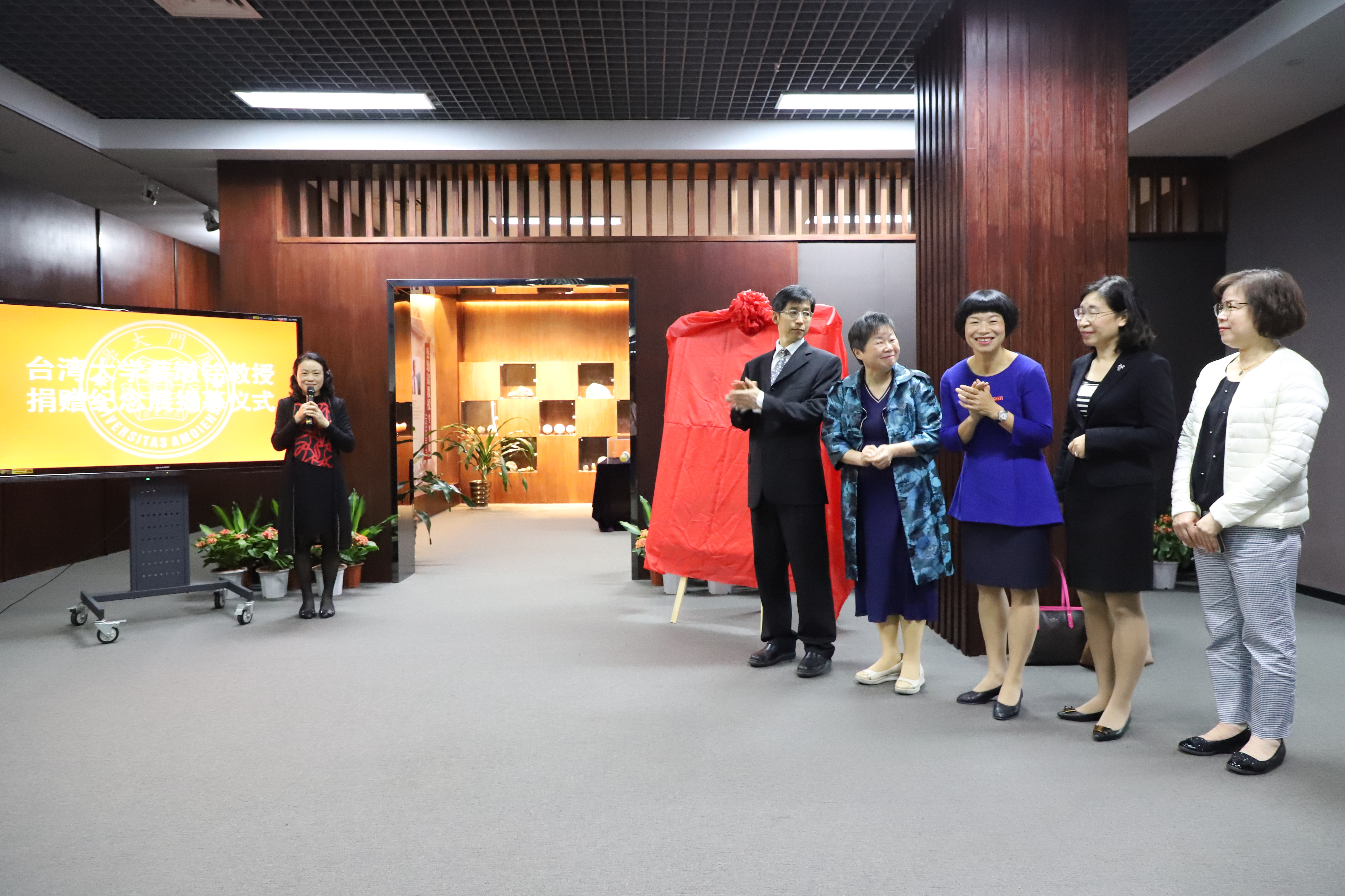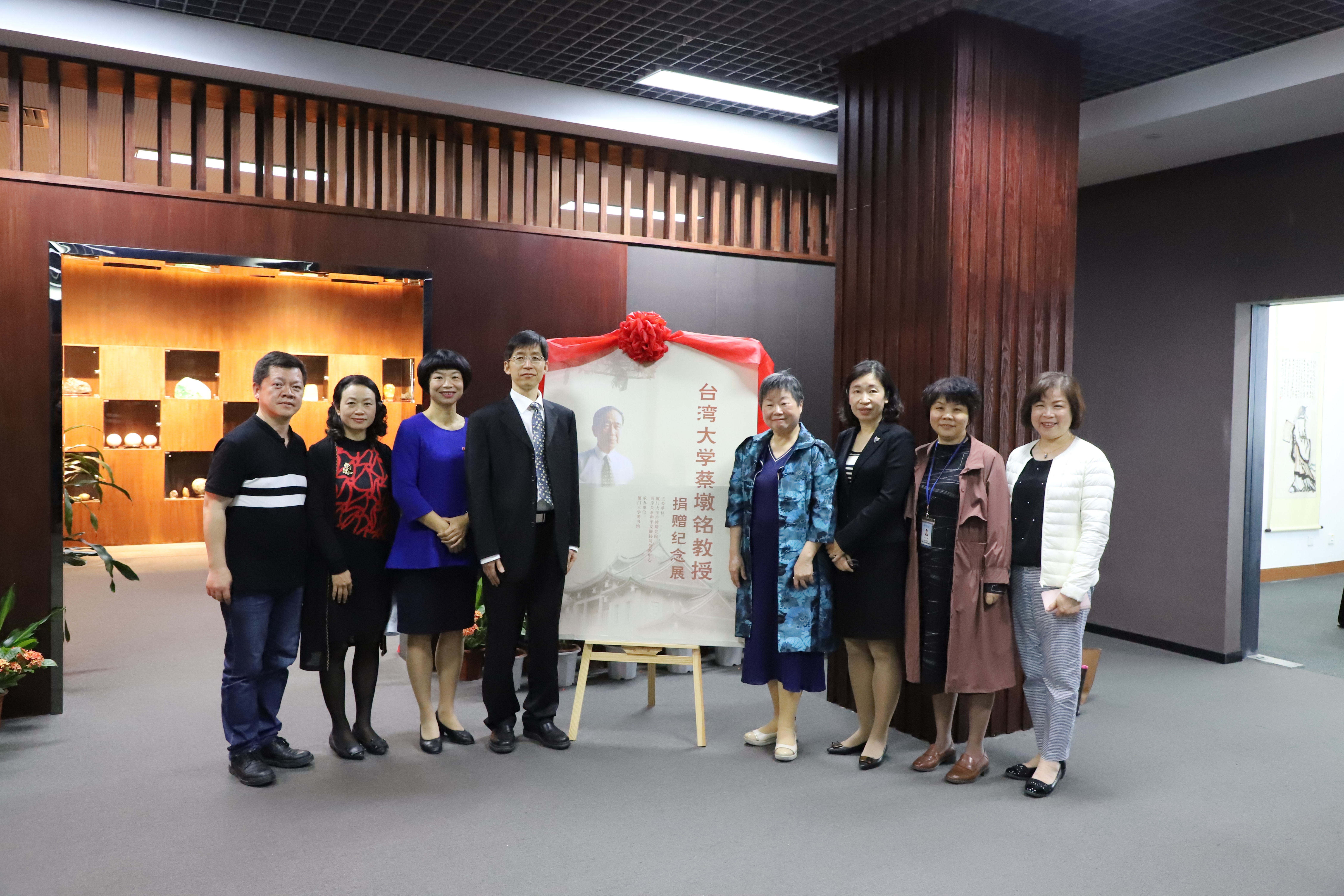 2019年4月15日上午,“台湾大学蔡墩铭教授捐赠纪念展”揭幕仪式在翔安校区德旺图书馆举行。蔡墩铭教授的遗孀萧美莲女士,台湾研究院党委书记曾坤瑜、副院长彭莉、蔡华瑢博士,厦大图书馆馆长钞晓鸿、副馆长戴鹭涛及部分师生代表参加活动。仪式由图书馆副馆长陈小慧主持。萧美莲和彭莉分别致辞。钞晓鸿致谢并向萧美莲颁发厦门大学捐赠证书。