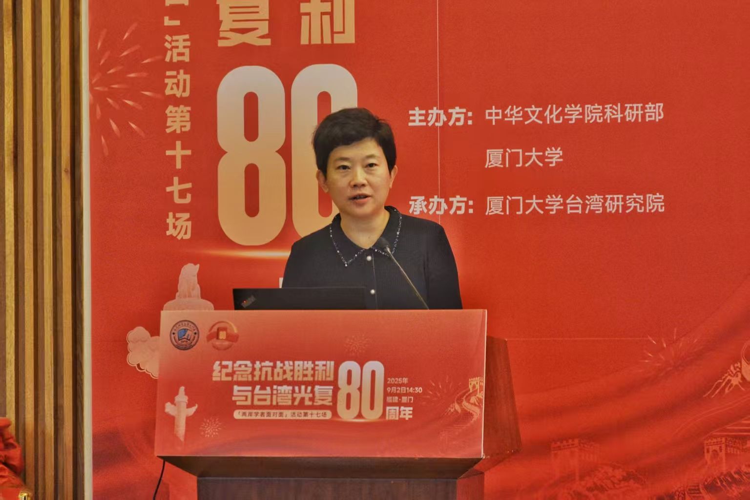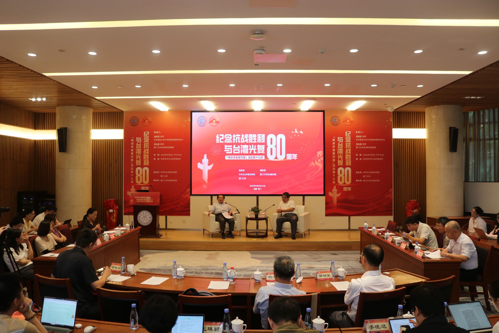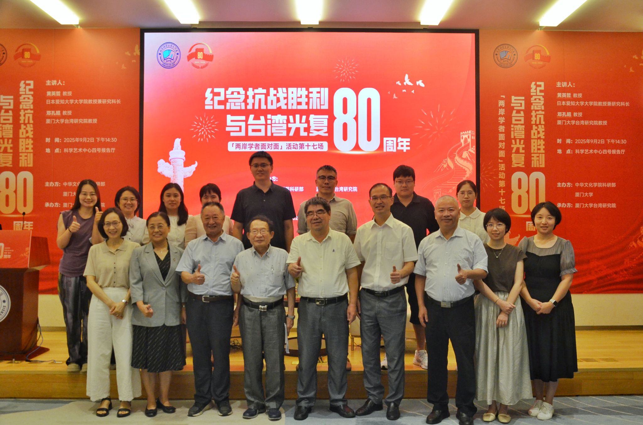 2025年9月2日下午,由厦门大学和中华文化学院共同主办、厦门大学台湾研究院承办的“两岸学者面对面”系列活动第十七场——纪念台湾光复80周年专场,在厦门大学科学艺术中心四号会议室成功举办。日本爱知大学大学院教授兼研究科长黄英哲教授和厦门大学台湾研究院著名台湾史专家邓孔昭教授围绕“纪念抗战胜利与台湾光复80周年”这一主题展开深度对谈。