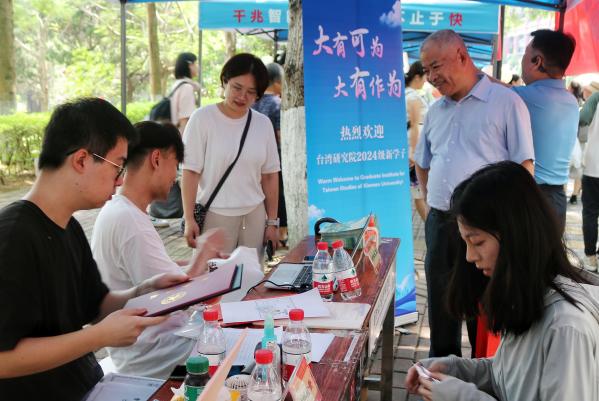 台湾研究院的温馨和谐氛围其来有自。研究院资深教授、台湾研究领域的泰斗、94岁高龄的陈孔立先生冒着高温也来到了迎新现场,关心迎新情况。院党委书记郭锦星、办公室主任郑毅芳等也来到了新生报到点,指导迎新工作。