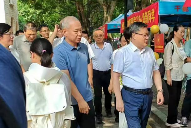 上午9点30分,厦门大学党委书记张荣院士、常务副书记林东伟老师、副校长邓朝晖老师等一行第一站就来到我院迎新点指导工作。张书记详细询问了新生报到的具体情况,亲切看望迎新志愿者。陈文副书记向校领导汇报了我院新生信息和迎新工作。