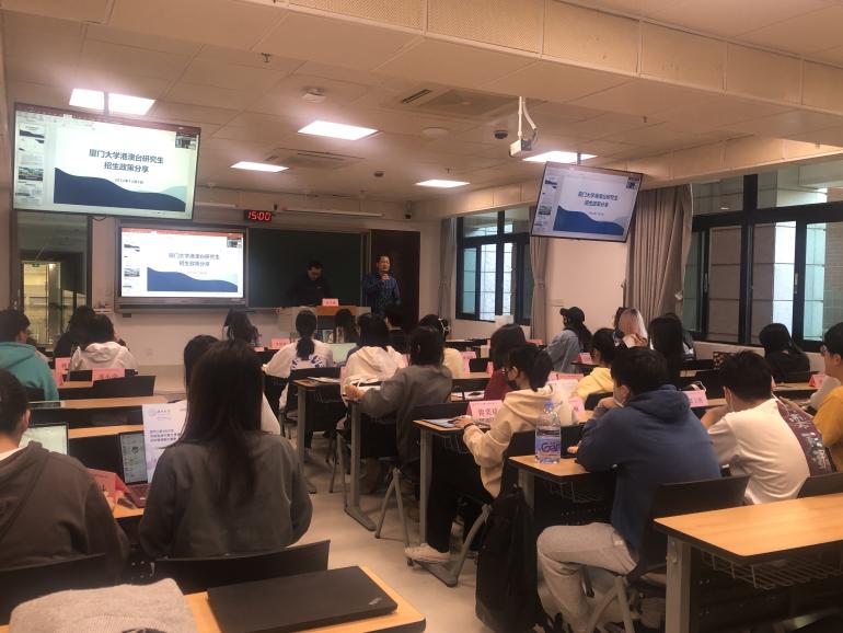校招生办蒋玉塔老师首先为同学们介绍了中国大陆(内地)高等教育发展情况,并讲述了厦门大学针对台港澳研究生的招生政策,就台港澳学生的报考资格、考试流程、申请材料清单、招生计划等方面作具体介绍。他还提醒同学们提早关注相关公告,把握好在校生优势,积极主动做好升学申请工作。