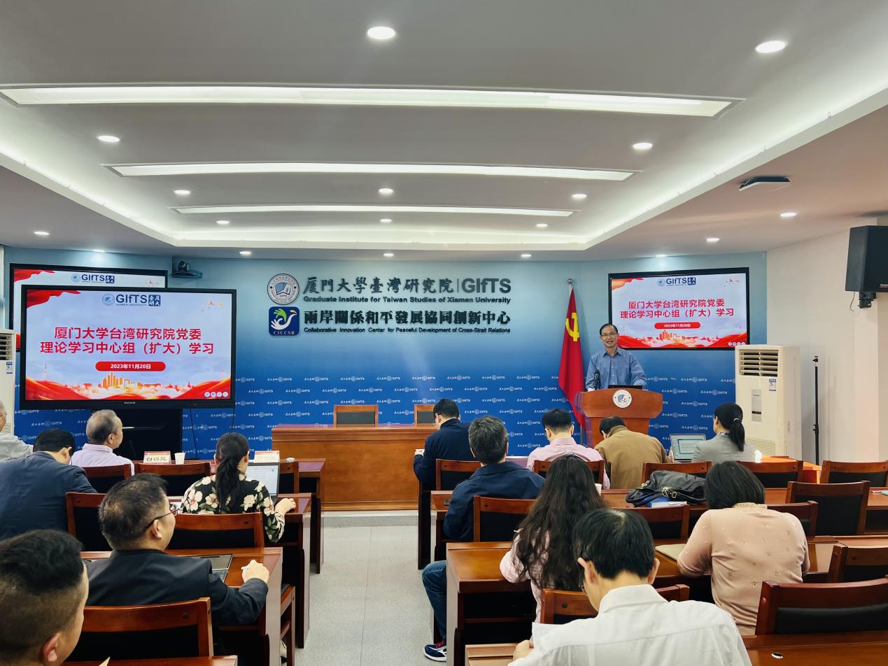 11月20日下午,台湾研究院党委在院507会议室召开理论学习中心组(扩大)学习会,会议围绕习近平文化思想开展学习和交流。校党建联络员白锡能同志,院党政班子成员,全体教师参加了会议。