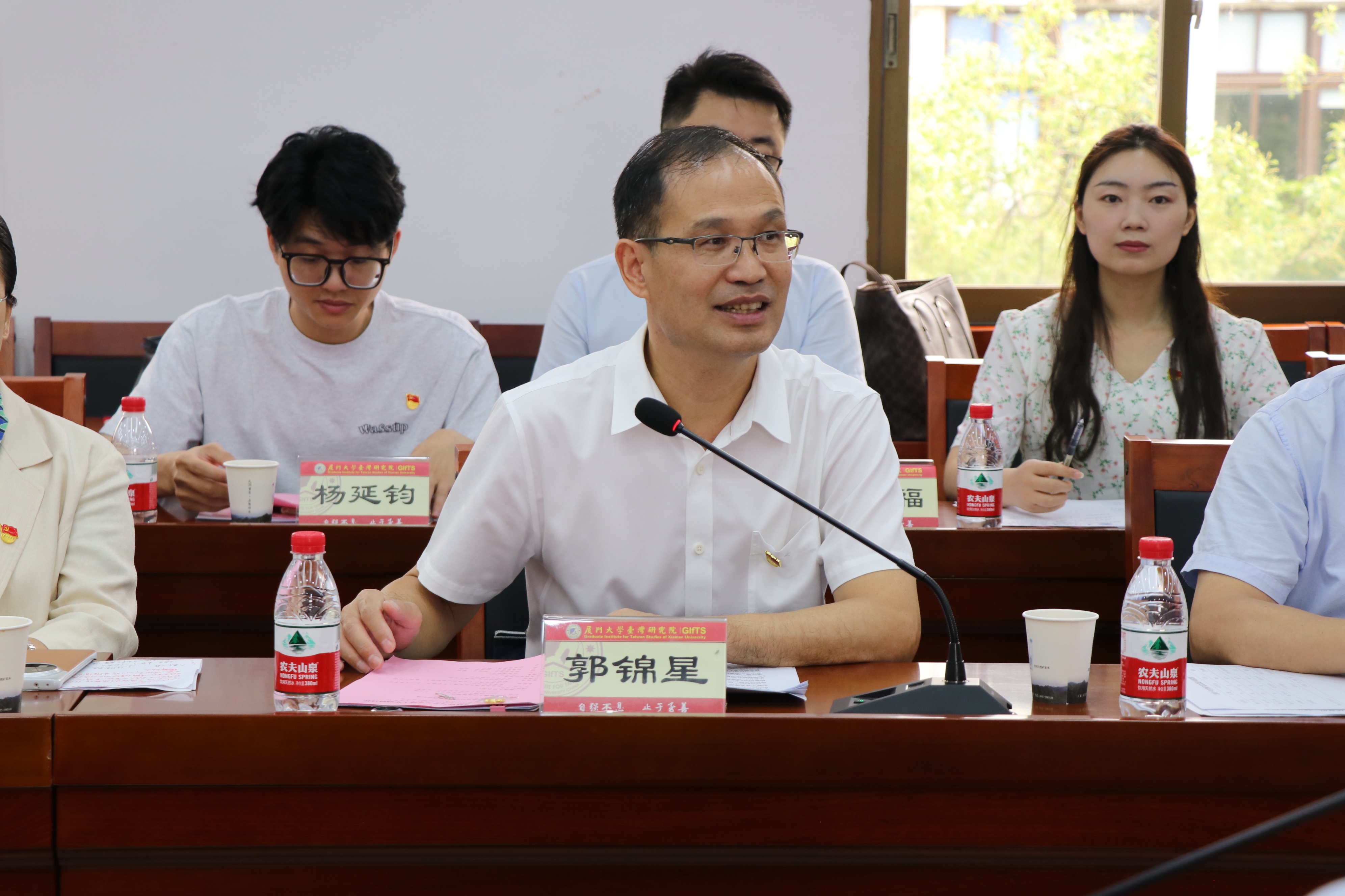 随后,召开党纪学习教育与学生党建工作调研座谈会,郭锦星书记代表院党委首先介绍了院党建基本情况和党纪学习教育情况。在汇报中,郭锦星书记表示自2024年4月党纪学习教育开展以来,院党委高度重视,第一时间做好师生动员部署,实时动态细化工作方案,多维联动营造出党纪学习教育的良好氛围。在此期间,院党委积极带领组织全体党员、干部深学细悟掌握条例精髓,守正创新提升学习成效,以案促学筑牢廉洁根基。院党委还以此次学习教育活动为契机,主动建章立制防范风险漏洞,推动问题的整改落实,营造出良好干事氛围,努力为福建省两岸融合发展示范区建设和厦门大学打造两岸融合发展的东南窗口做出更大贡献。学生党支部书记王汭晴、王学勤分别代表博/硕士生党支部汇报了学生党支部党纪学习教育的开展情况。陈子辰与在场的师生代表进行了深入互动交流。