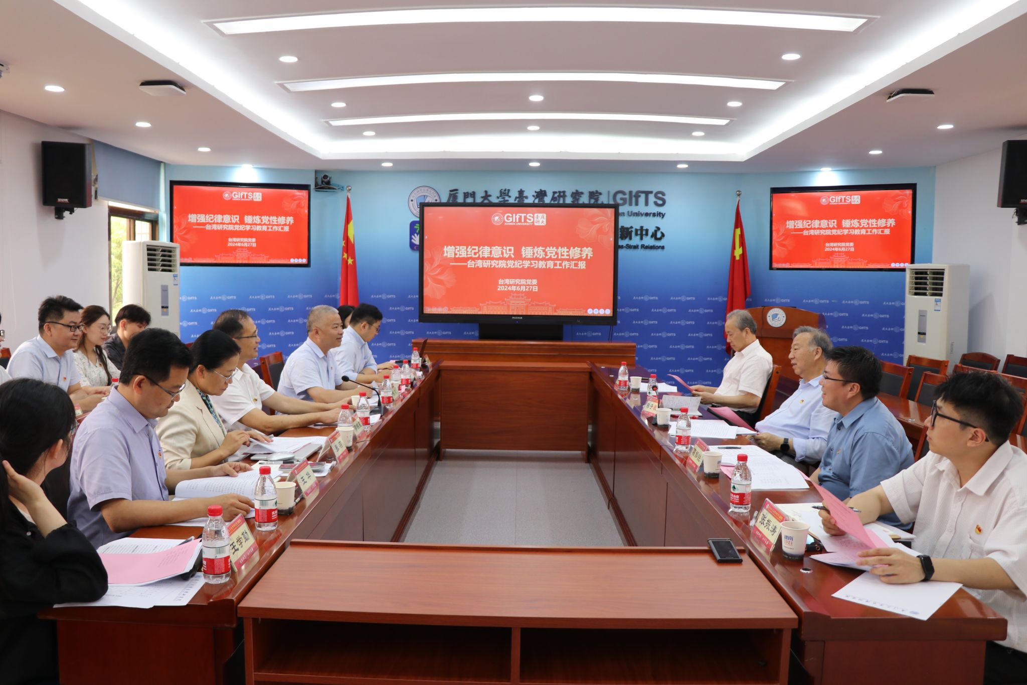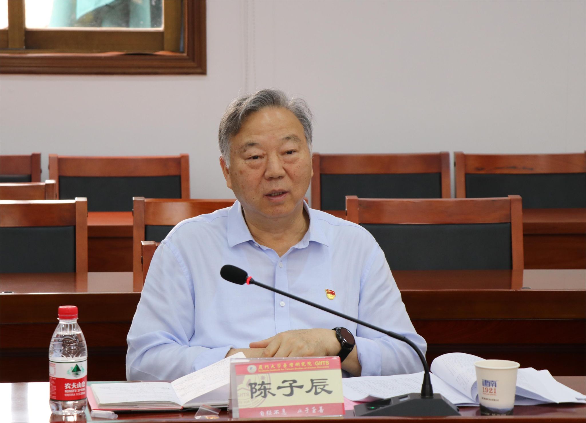 在听取汇报和现场交流后,陈子辰充分肯定我党委的工作,并提出三点意见和希望。一是要认真履行主体责任,加强党的纪律建设。全院上下必须牢固树立政治红线意识,始终保持清醒的政治头脑,始终与党中央的对台大政方针保持一致。二是要以学促干,赋能事业发展。通过不断学习,增强自身能力和素质,以高度的责任感和使命感,继续发挥全院师生党员在福建省两岸融合发展示范区建设和厦门大学打造两岸融合发展的东南窗口等中心工作中的“排头兵”作用。三是要鼓足干劲,争取更上层楼。当前正是事业发展的关键期,全体师生党员应充分发扬“自强不息、止于至善”的校训精神,进一步扩大台湾研究院的跨学科优势,以不懈的努力和追求卓越的决心,推动研究院各项事业向前发展。