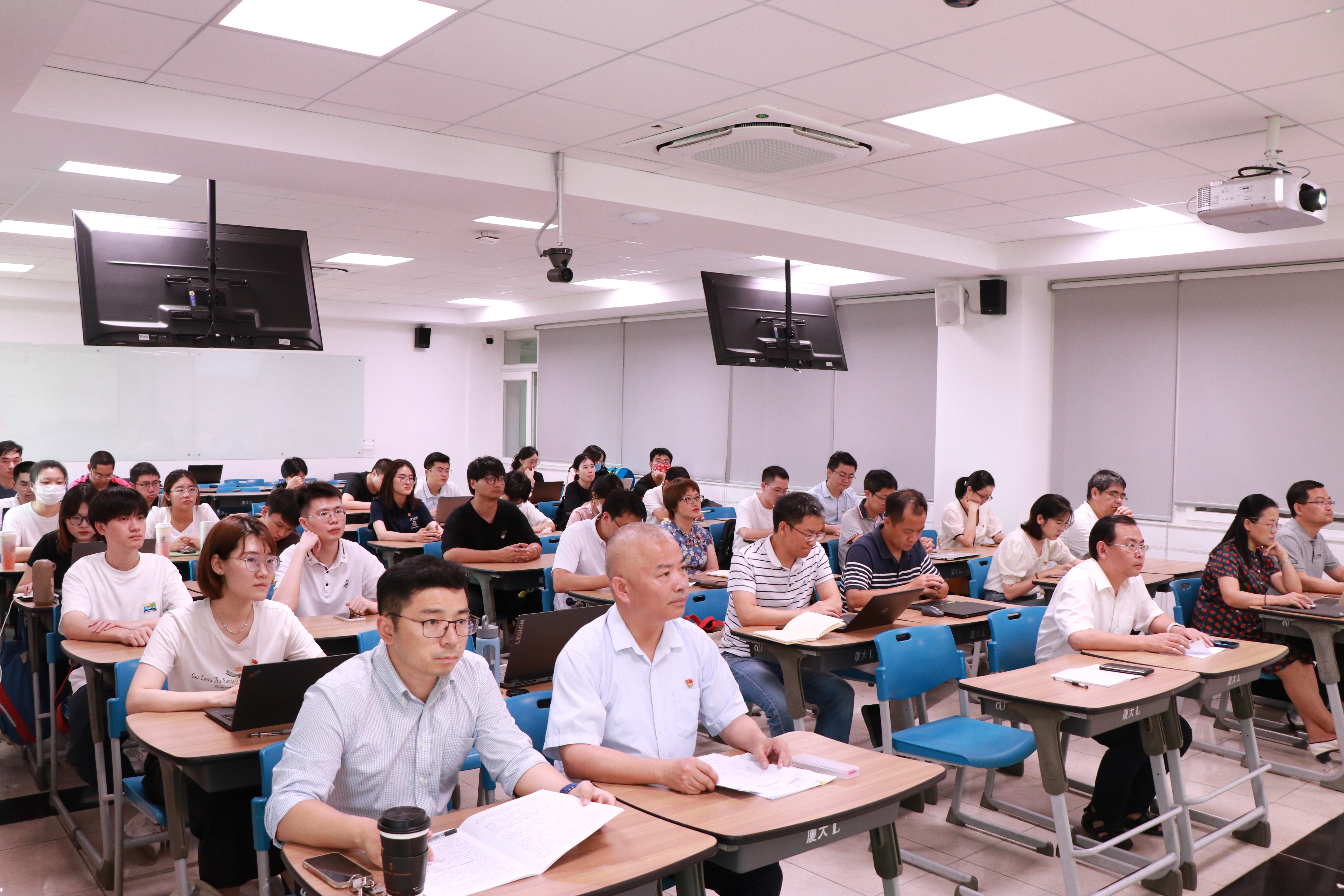 郭锦星书记向与会人员通报了我院学习贯彻习近平新时代中国特色社会主义思想主题教育开展情况。郭书记表示,自主题教育开展以来,院党委以高度的政治责任感,迅速开展有关工作,确保主题教育的各项要求在研究院落地落实。他从落实主体责任、加强组织领导,加强理论学习、坚定理想信念,坚持问题导向、大兴调研之风和破解发展难题、推动事业发展等四个方面详细介绍了我院主题教育开展情况。同时,郭书记强调,在接下来的主题教育中,研究院各党支部和全体师生党员要继续加强理论武装,原原本本读原文、认认真真悟原理;要继续开展好调查研究,将调研成果转化为推动工作的思路办法和政策举措;要继续做好检视整改工作,扎实开展好民主生活会和组织生活会。