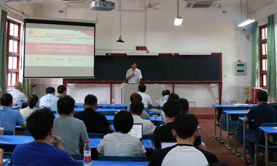 为扎实开展学习贯彻习近平新时代中国特色社会主义思想主题教育,深入学习贯彻党的二十大精神,7月17日下午,台湾研究院党委邀请厦门市委党校周明伟教授为研究院师生党员作题为“习近平新时代中国特色社会主义思想开辟马克思主义中国化时代化新境界”专题辅导报告。院党委书记郭锦星,院长李鹏,院党委副书记陈文,副院长张羽、张文生、季烨,院党委委员王华,各党支部书记和党员代表参加报告会。报告会由郭锦星书记主持。