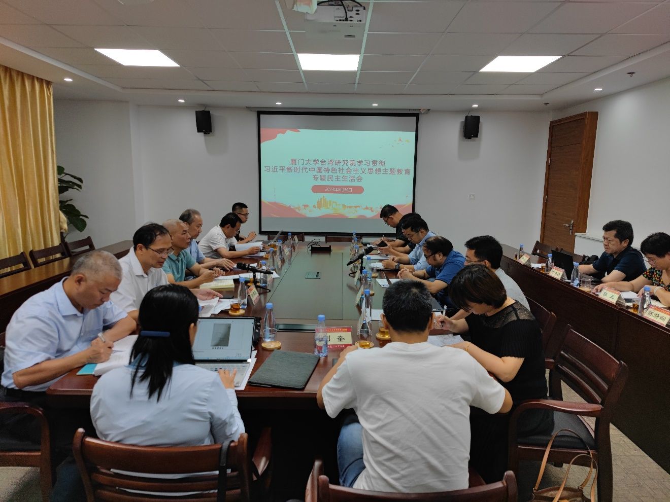 2023年8月30日上午,台湾研究院在嘉庚四612会议室召开了学习贯彻习近平新时代中国特色社会主义思想主题教育专题民主生活会。校第四巡回指导组副组长林金宝老师、党建工作联络员白锡能老师莅临指导,会议由院党委书记郭锦星主持。