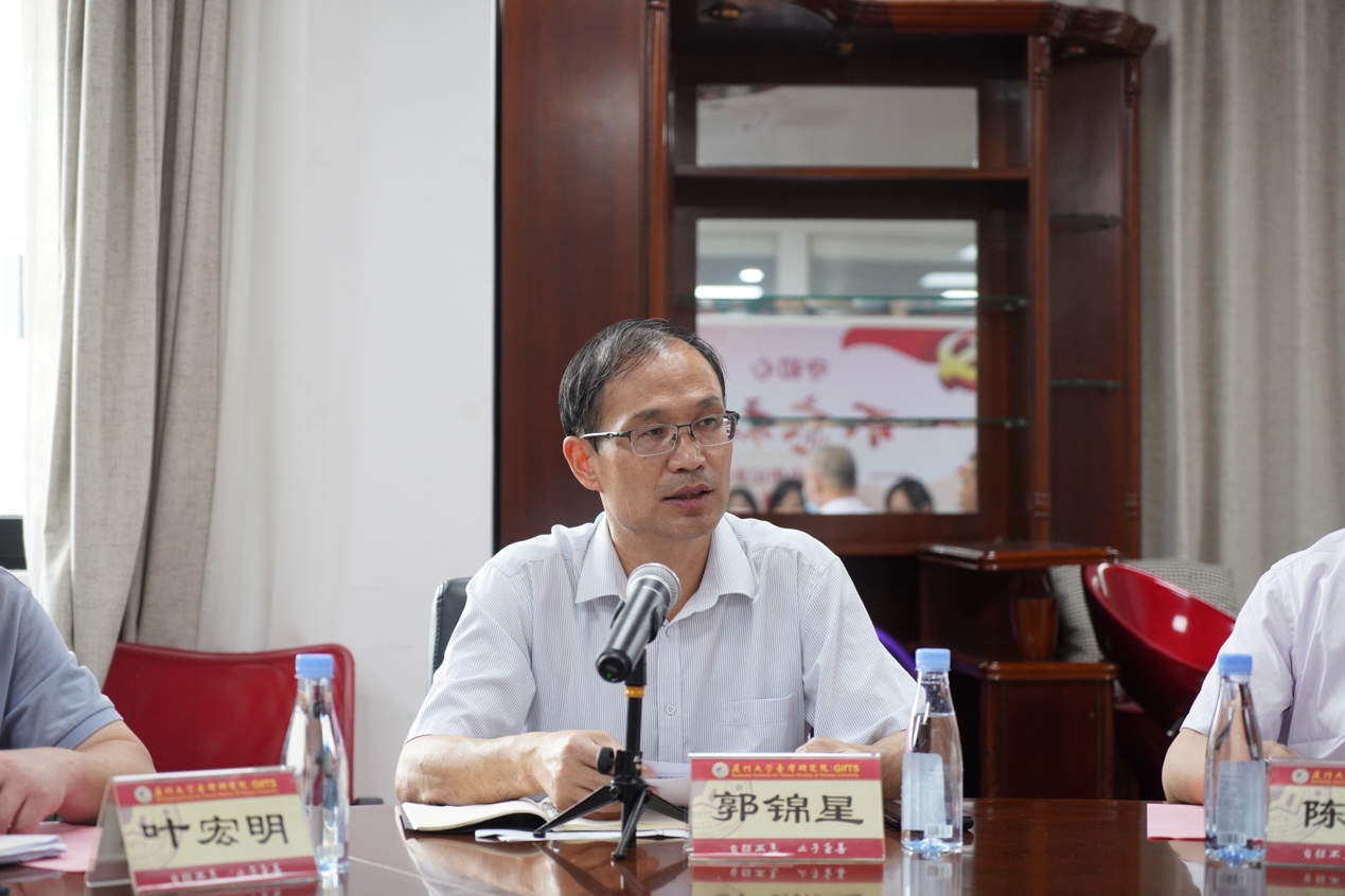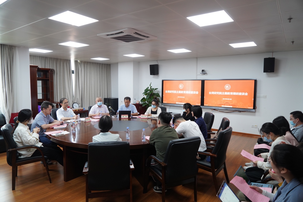 为加强国家高端智库建设,培养更多高素质的智库人才,提升我院服务区域发展和国家战略能力。5月24日下午台湾研究院主题教育调研学生专场座谈会在嘉庚四418会议室举行。我院党委书记郭锦星、副书记陈文、文献信息中心主任叶宏明、团委书记黄涛及部分师生代表参加调研。座谈会由陈文副书记主持。