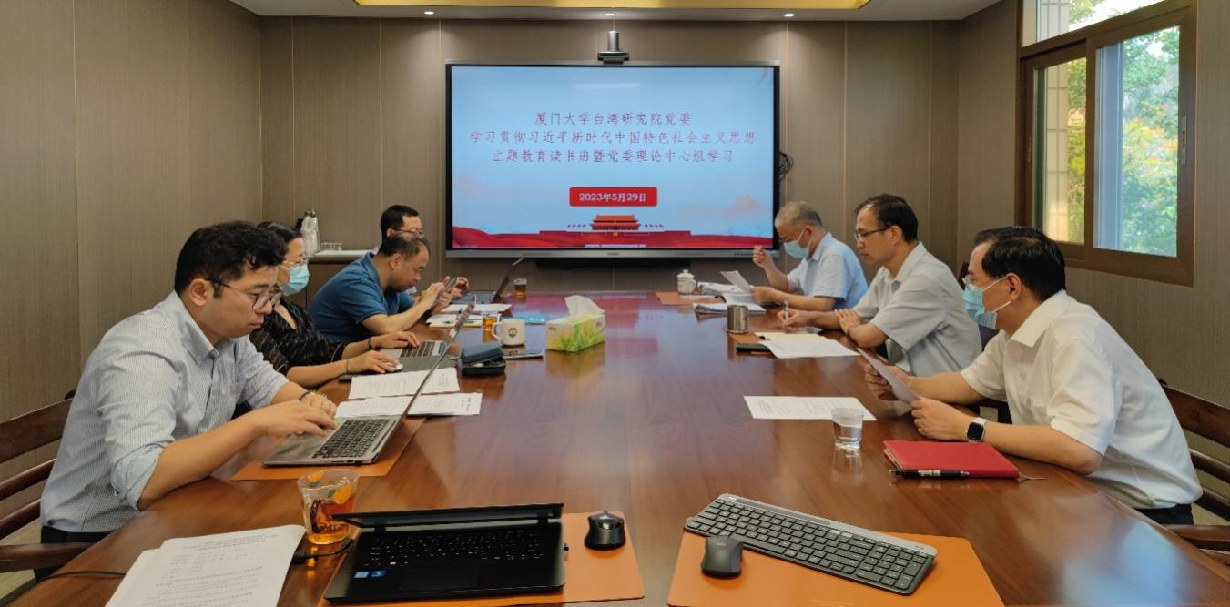 5月29日上午,台湾研究院党委举行学习贯彻习近平新时代中国特色社会主义思想主题教育读书班。此次读书班重点学习《习近平新时代中国特色社会主义思想学习纲要》,《论党的自我革命》,重温习近平总书记致厦门大学建校100周年重要贺信精神、厦门经济特区建设40周年重要贺信精神等内容。读书会由党委书记郭锦星主持,全体处级党员领导干部及院党委委员参加。读书班后,院党委理论学习中心组召开学习贯彻习近平新时代中国特色社会主义思想主题教育第四次专题学习,此次学习围绕“凝心聚力:精神引领涉台研究事业发展蓝图,乘势聚力开创新局面”开展,院长、党委副书记李鹏,副院长张羽、季烨分别作重点发言。