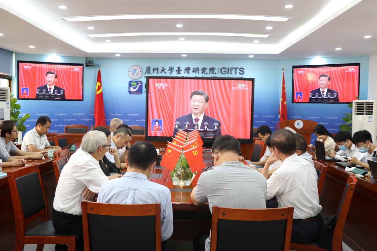 10月16日上午,中国共产党第二十次全国代表大会在北京人民大会堂开幕。为深入学习贯彻党的二十大精神,厦门大学台湾研究院党委在507学术报告厅组织我院师生代表集中收看开幕会的直播盛况。与会师生认真聆听了习近平总书记代表中国共产党第十九届中央委员会向大会所作的报告,并交流分享了对党的二十大胜利召开的感想。大家精神抖擞,满怀激情,现场气氛热烈。台湾研究院党委书记曾云声、院长李鹏、党委副书记陈文、副院长张羽以及各研究所负责人、民主党派教师代表、离退休党员代表、各党支部委员、党员代表参加。
