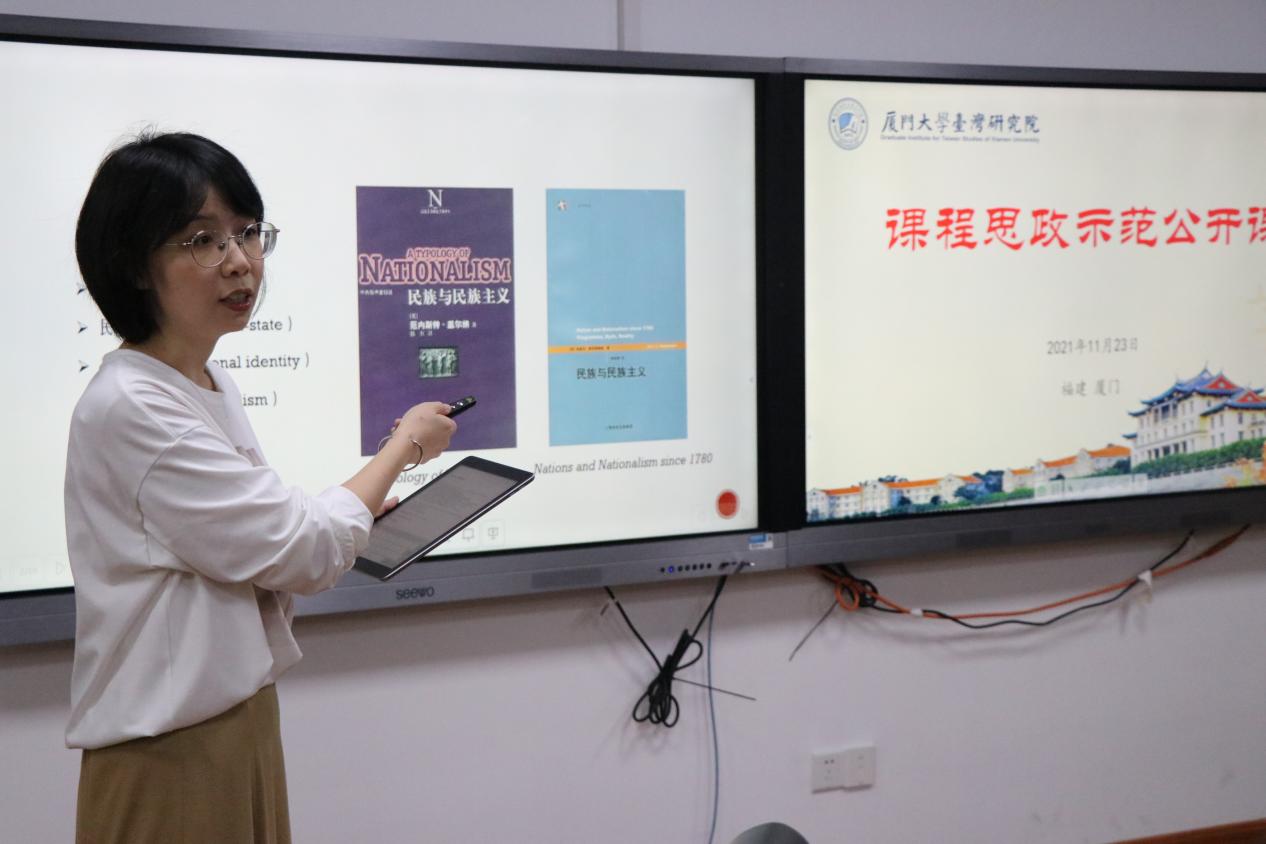 11月23日下午,台湾研究院文学所吴舒洁助理教授在嘉庚四418主讲了“民族共同体意识的现代性内涵”课程思政示范公开课。我院党委书记曾云声、党委副书记陈文、院长李鹏教授、副院长张羽教授、副院长张文生教授、文学所朱双一教授、两岸所所长张宝蓉教授、政治所副所长唐桦副教授、团委书记黄涛老师以及我院硕博士生参加课程旁听。