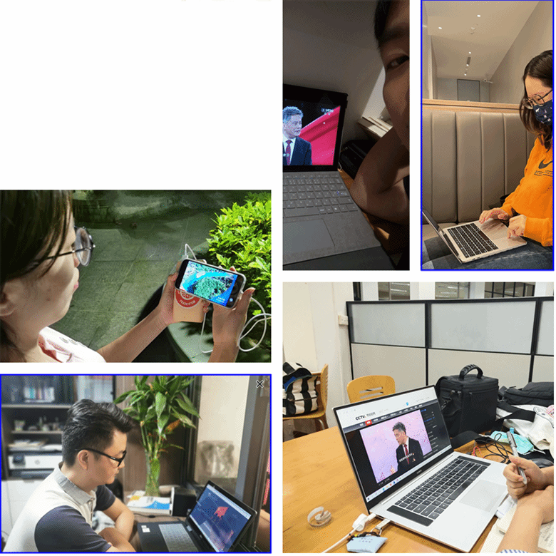 (2021级博士生党支部组织在校外党员纷纷以各种方式,同步参加《党的光辉历程》学习活动)