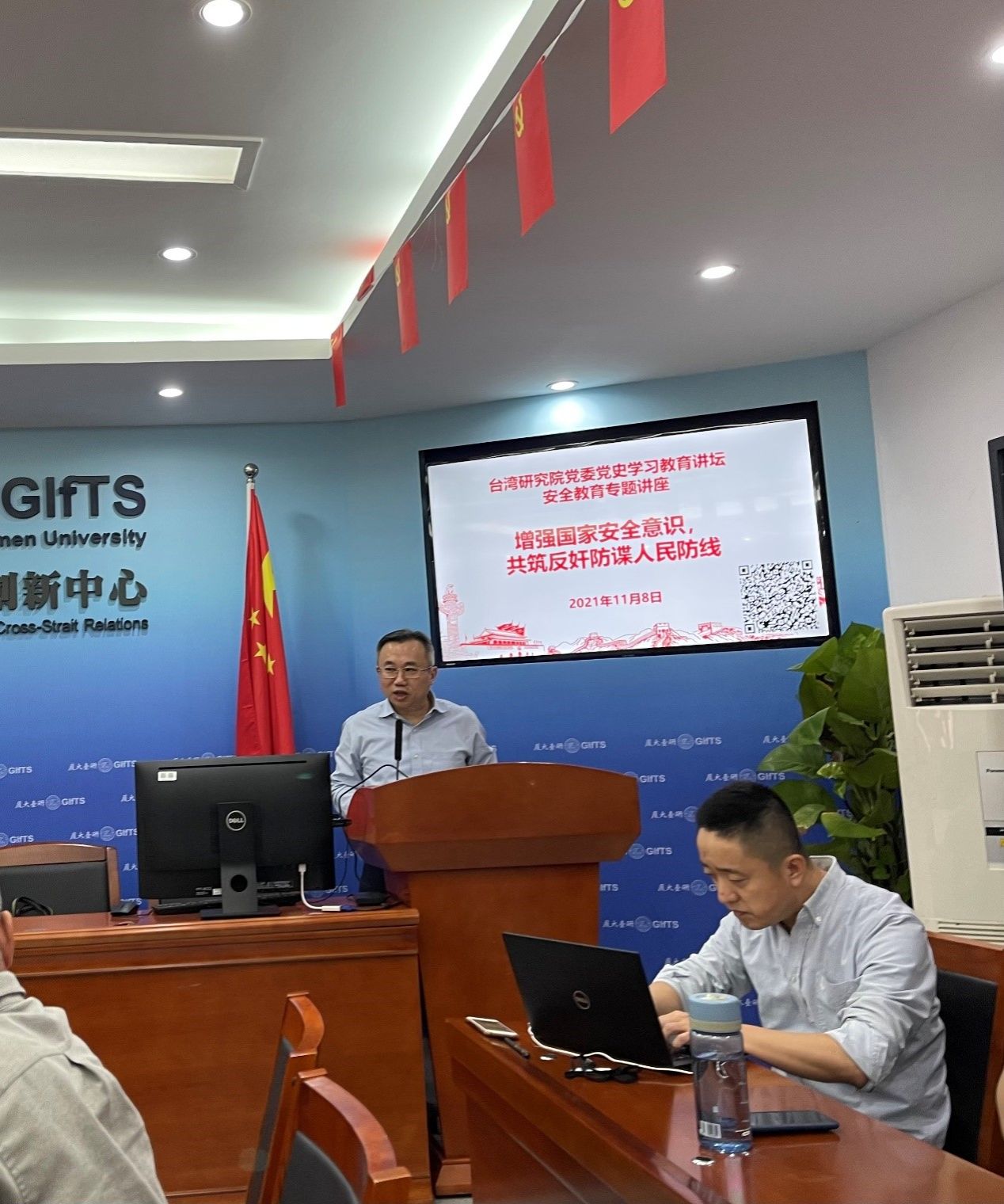 为了深入贯彻落实党的十九届五中全会精神和学习总体国家安全观,2021年11月8日下午,我院邀请相关人士举办“台湾研究院党委党史学习教育讲堂之安全教育专题讲座-增强国家安全意识,共筑反奸防谍人民防线”,讲座由党委书记曾云声主持,曾云声书记指出,11月1日是《中华人民共和国反间谍法》颁布七周年纪念日,我院党委响应校党委的号召,积极开展相关宣传教育活动,“三防”讲座是活动的重要组成部分,全院师生都应该牢固树立安全保密意识。院长李鹏,党委副书记陈文,副院长彭莉、张羽、张文生及全院老师参会,对相关专家的系统全面、生动形象的讲解表示了热烈的欢迎与高度的认可,有助于大家筑牢反奸防谍的坚固防线。