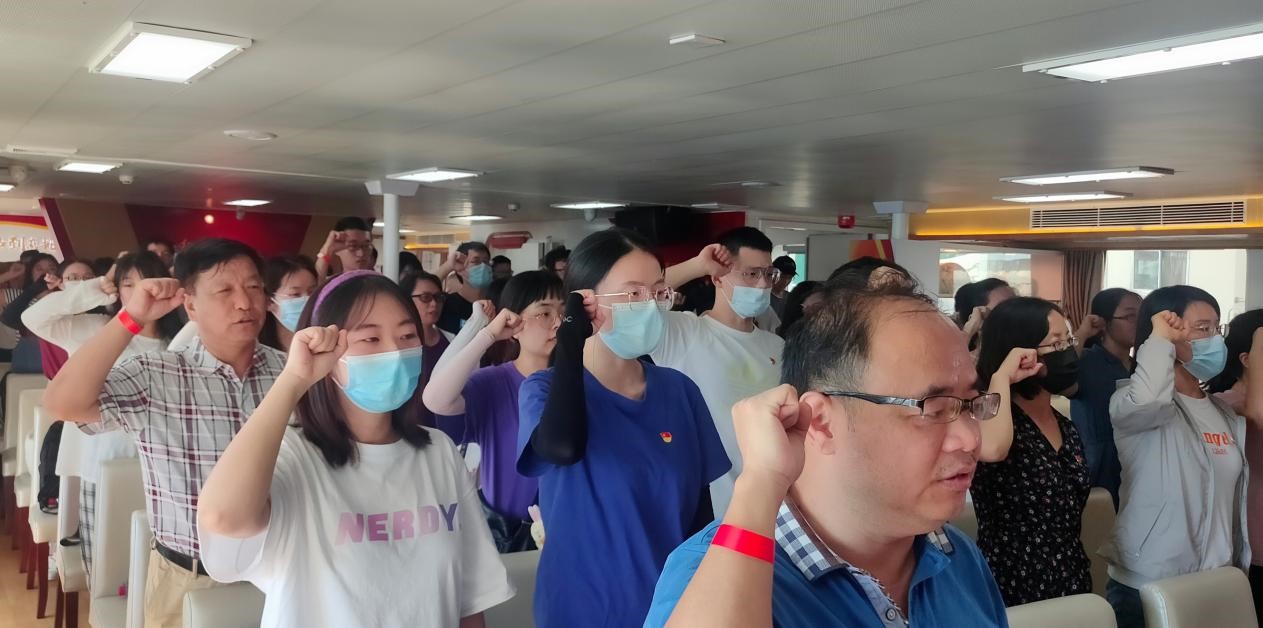 在对“学习号”船体三层学习参观后,师生党员们回到了船体一层,参加了革命歌曲竞猜、重温入党誓词等活动,现场学习气氛热烈。