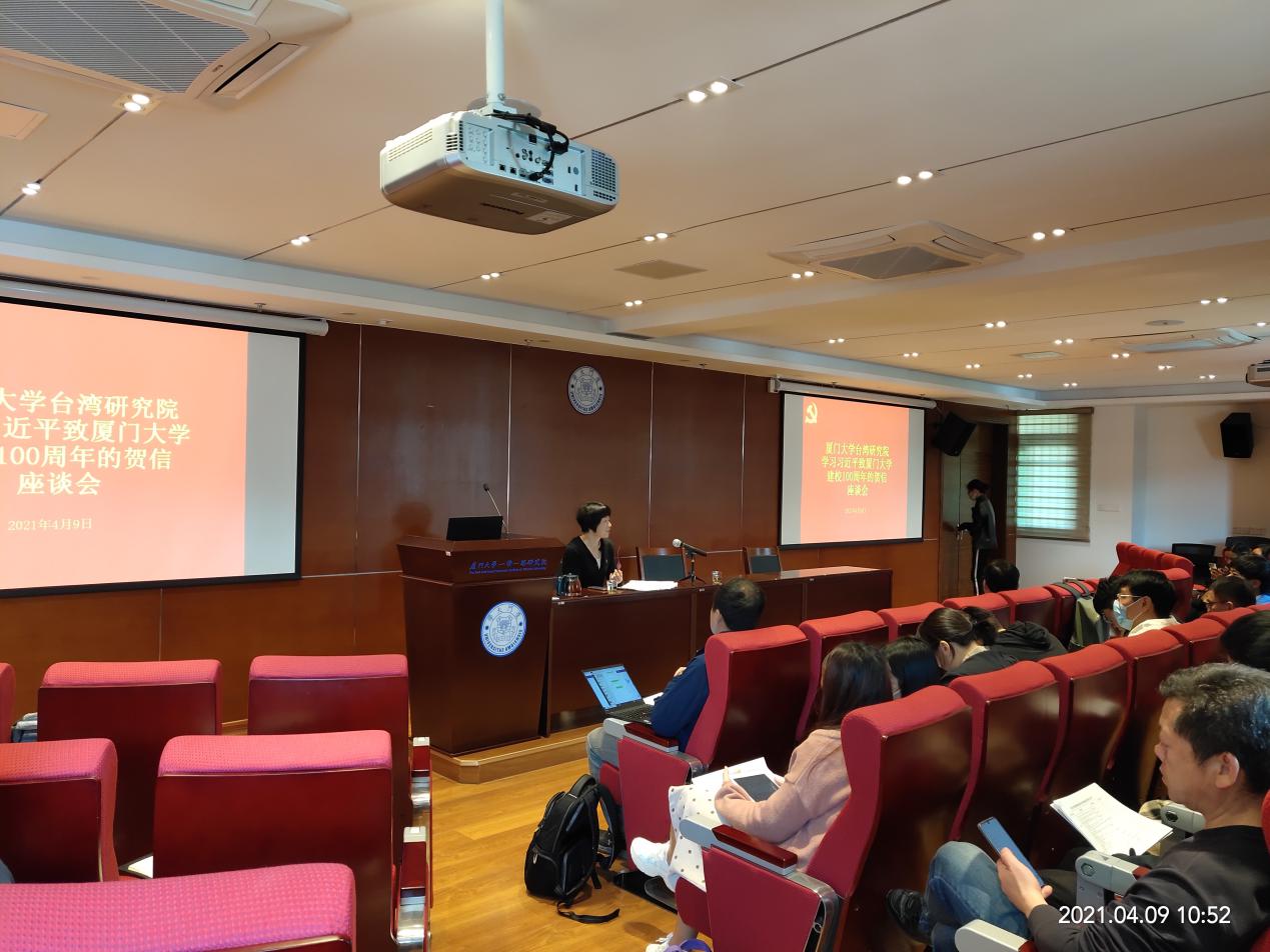 院党委副书记陈文特别给与会者分享了总书记在贺信中的关键词。他说,站在两个一百年的历史交汇期,在厦大建校百年和即将迎来建党百年的特殊时刻,总书记给我们发来了贺信,充分肯定了厦大的办学成就和办学特色,更对未来开启的百年之路提出了期许。对任何一个心怀梦想的中兴大国,难免会遇到前行路上的困难,但唯有不畏艰难、脚踏实地、只争朝夕才是我们坚定的选择。我们应结合台湾研究院的实际,结合两岸研究的实际,为增强中华民族凝聚力和向心力,服务国家的战略目标,作出我们应有的贡献。