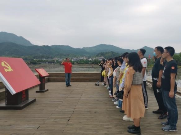 下午,服务团一行来到了上杭县古田村,参访了古田会议会址、古田会议纪念馆等地。1929年12月,毛泽东同志主持的红四军第九次代表大会在此召开,通过了具有历史意义的古田会议决议案。“古田会议决议”被作为思想建党、政治建军的第一个纲领性文件而载入史册。通过重温入党誓词和实地走访,师生们体悟了古田会议精神的内涵,增强了爱国情怀,也对“古田会议永放光芒”的标语产生了更为深刻的认识。