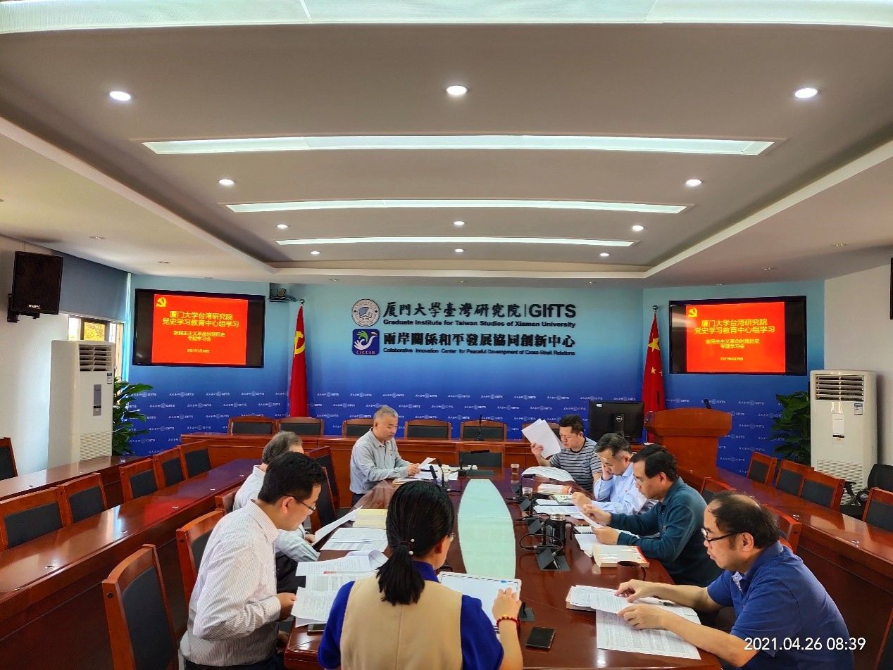 4月26日上午,厦门大学台湾研究院理论学习中心组党史学习教育第一次专题学习会召开,围绕“新民主主义革命时期历史”主题进行学习交流。会议由台湾研究院党委书记曾云声主持。党建联络员白锡能莅临指导。