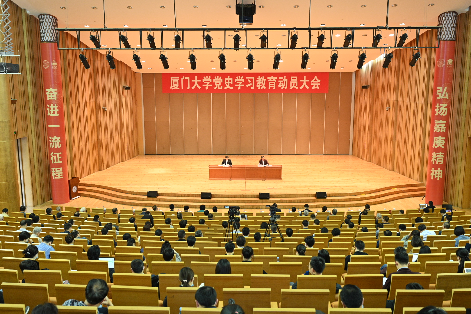3月15日上午,厦门大学召开党史学习教育动员大会,深入学习贯彻习近平总书记重要讲话精神,按照中央要求,紧密结合厦大改革发展实际,对学校开展党史学习教育进行动员部署。校党委书记张彦作动员讲话。校长、党委副书记张荣主持。我院党政班子成员、教工和学生党员代表在科艺中心现场和院五楼会议室以视频方式与会。