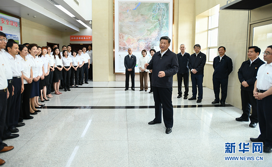 7月15日至16日,中共中央总书记、国家主席、中央军委主席习近平在内蒙古考察并指导开展“不忘初心、牢记使命”主题教育。这是16日,习近平在内蒙古自治区自然资源厅调研指导开展“不忘初心、牢记使命”主题教育。 新华社记者 谢环驰 摄