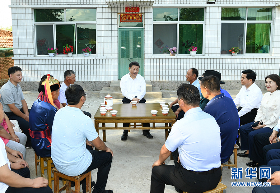 7月15日至16日,中共中央总书记、国家主席、中央军委主席习近平在内蒙古考察并指导开展“不忘初心、牢记使命”主题教育。这是15日下午,习近平在赤峰市喀喇沁旗河南街道马鞍山村村民张国利家,同基层干部群众代表亲切交流。 新华社记者 谢环驰 摄