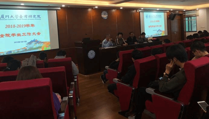 李鹏院长围绕“巩固”的主题词,首先就学院本学期学生工作等情况讲话。李鹏院长在讲话中指出,今年我院发展迅速,在学术成果、学生工作、国际交流等多方面收获颇丰。陈文副书记对过去一学期的学院学生工作进行总结,并展望明年的学生工作计划,他同时强调假期安全,再三提醒同学们一定要注意安全。张羽副院长就以精彩的“研究生学术行事历”为大家再次讲解研究生的学习计划和要求,并提醒学生重要的时间节点。同时,张羽院长也为大家介绍了明年即将举办的重要学术活动,第六届“两岸学子论坛”和台湾研究院40周年口述历史项目,希望全院学生的积极参与。